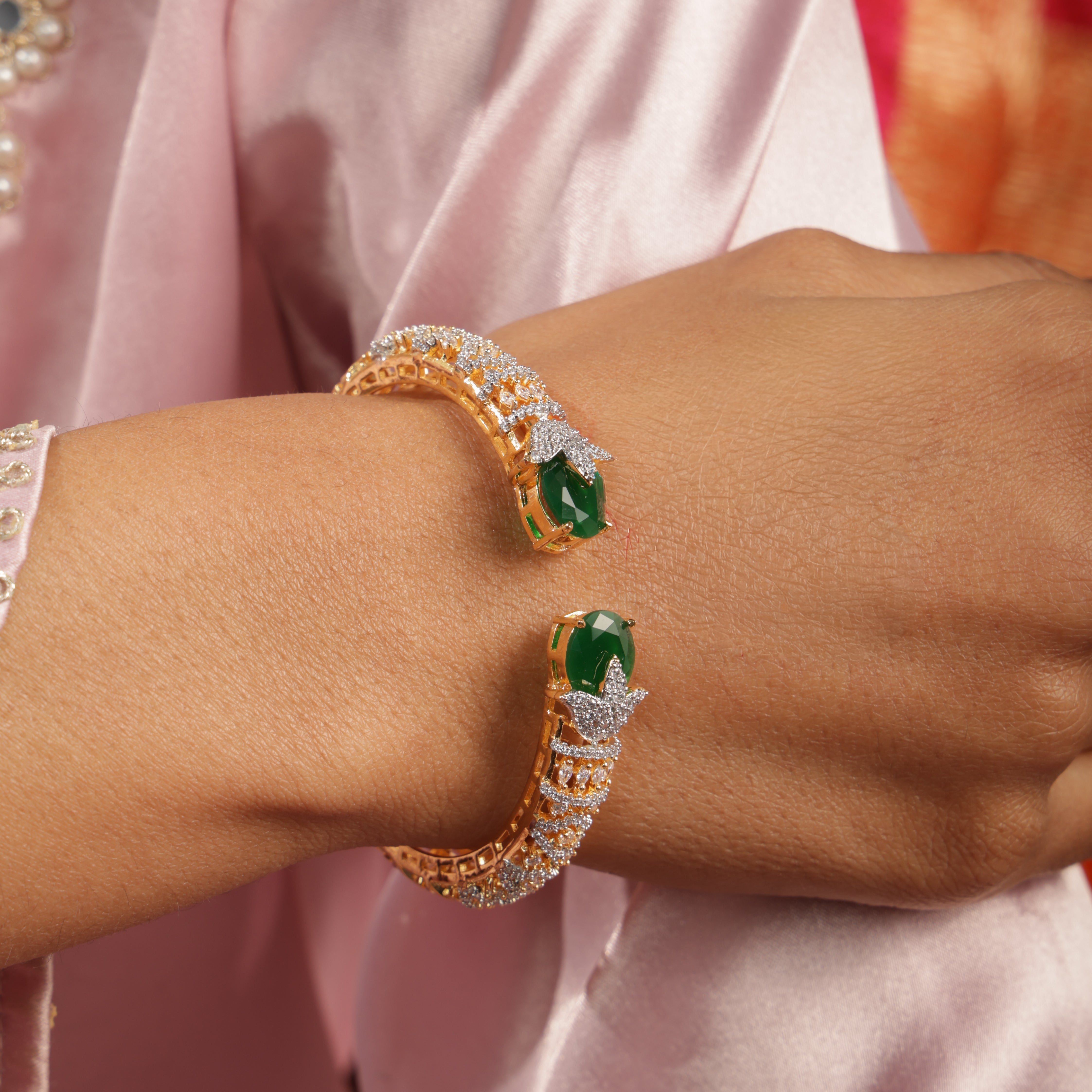 Vallari Emerald CZ Open Cuff Kada