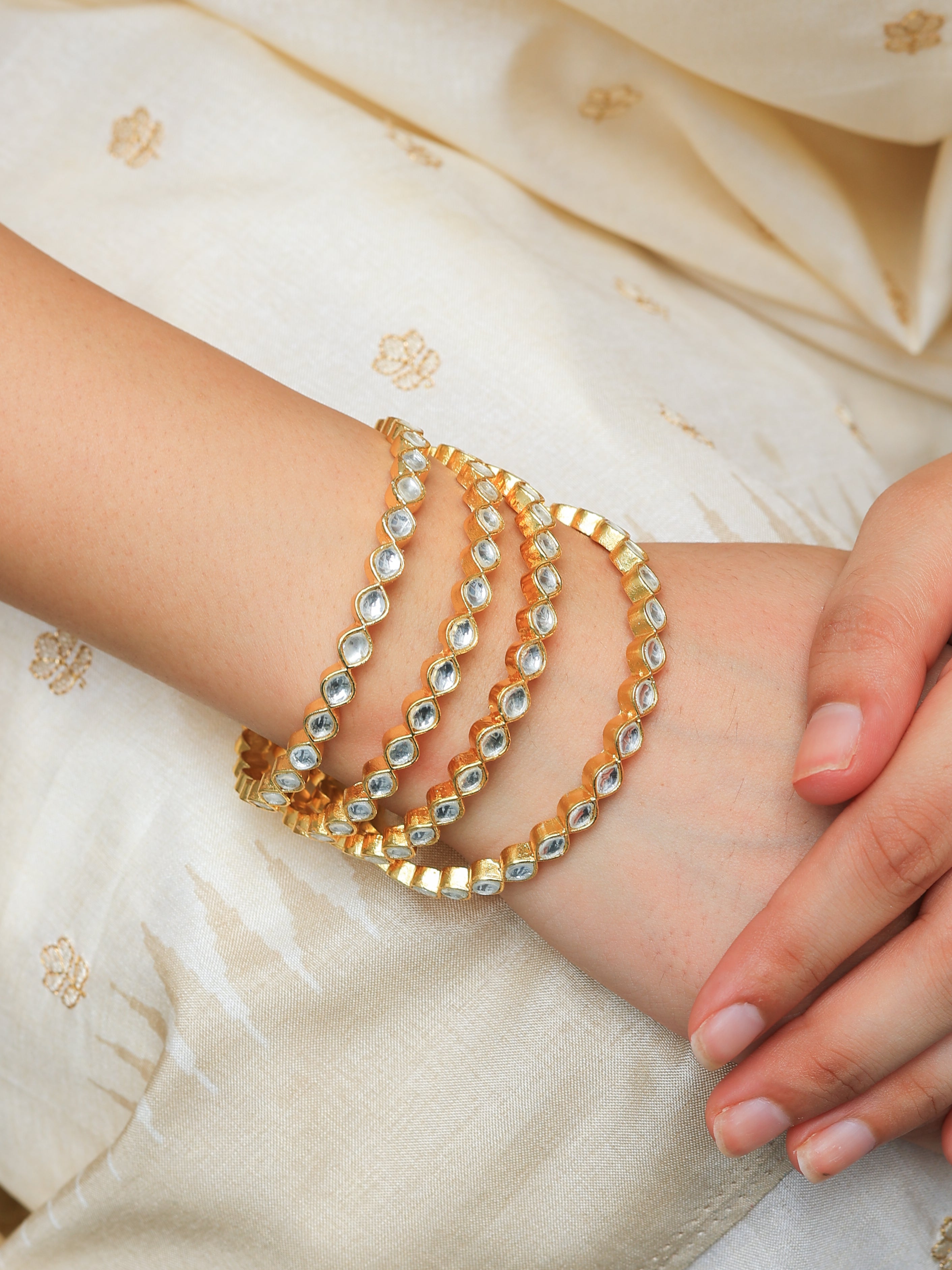 Experience the timeless allure of traditional craftsmanship with this exquisite  Pachi Kundan bangles. Featuring intricate hand-set kundan stones that shimmer with every movement, these bangles beautifully blend regal elegance with delicate artistry. Perfect for weddings, festive occasions, or adding a touch of luxury to your everyday style, this set complements both ethnic and contemporary ensembles. Elevate your jewelry collection with these stunning, statement-making bangles.