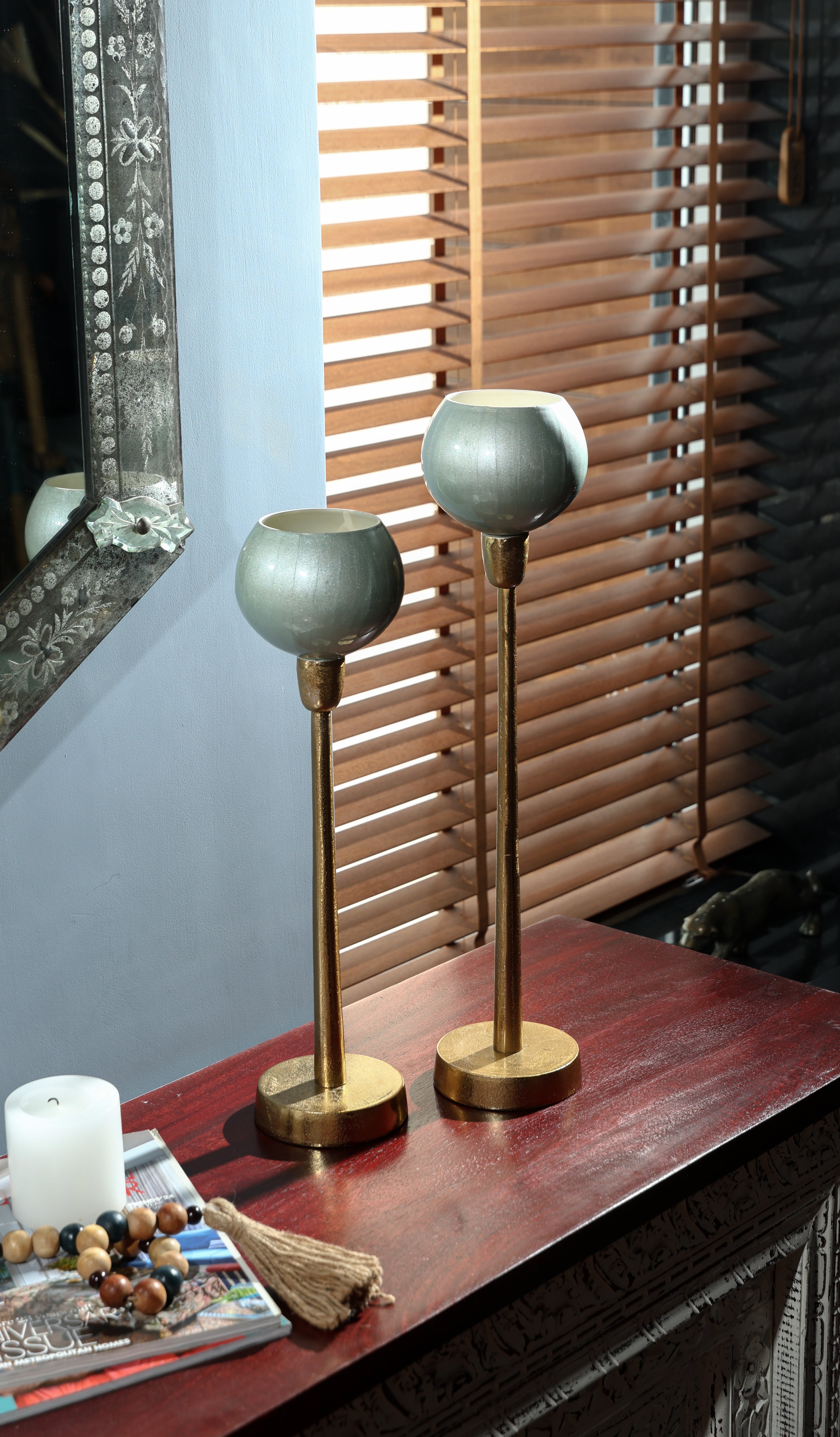 Give your décor a regal touch with these exclusive design candle holders. Very chic and sophisticated just right for making your décor special. Ideal for festive décor or gifting.