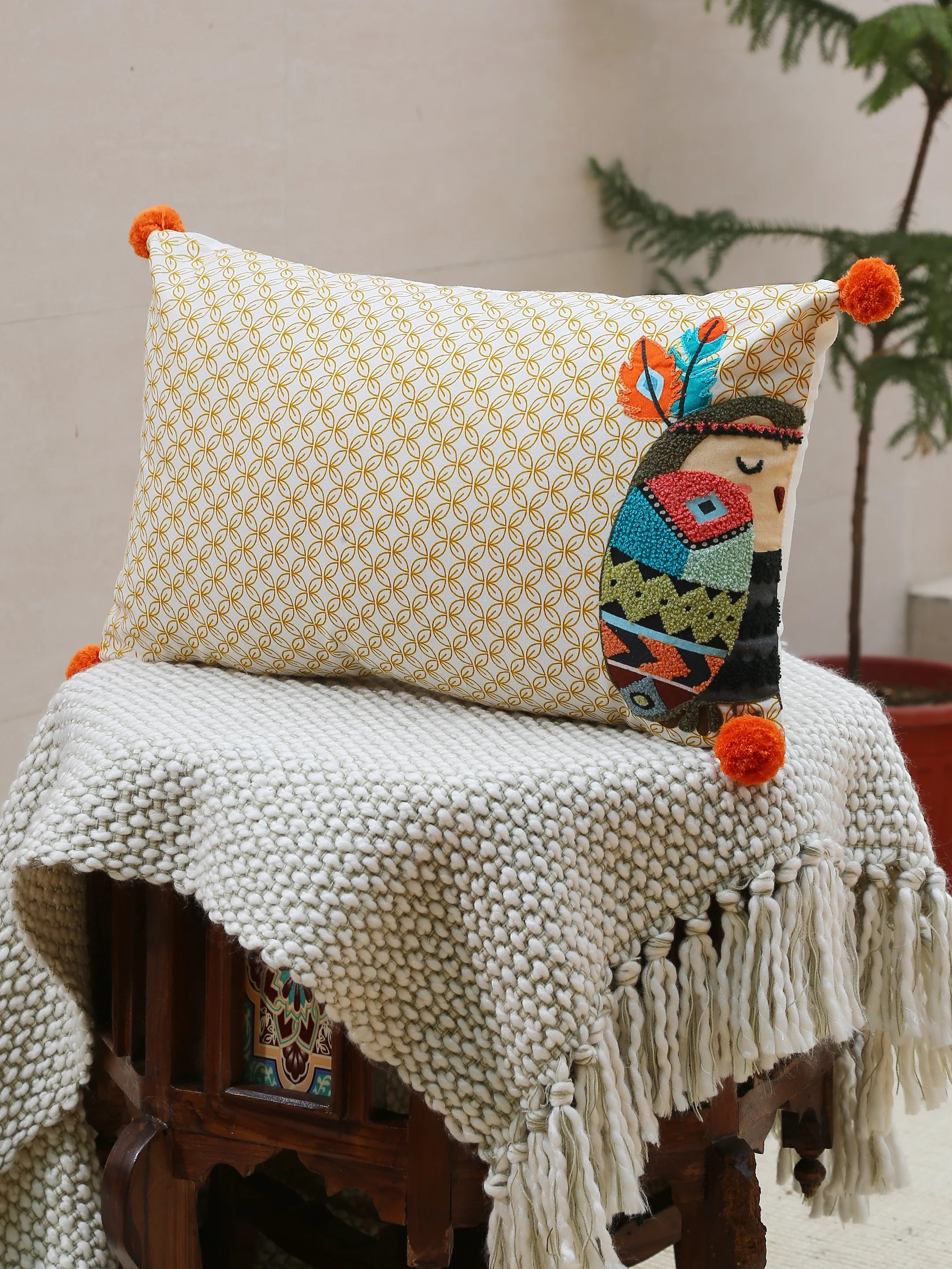 Add the quirky charm to your décor. Bring home this unique Cat design quirky cushion cover with delicate applique work and embroidery. The uniqueness and playfulness of this vibrant cushion cover will make your décor pleasant and lively. Shop the entire collection to complete the look.