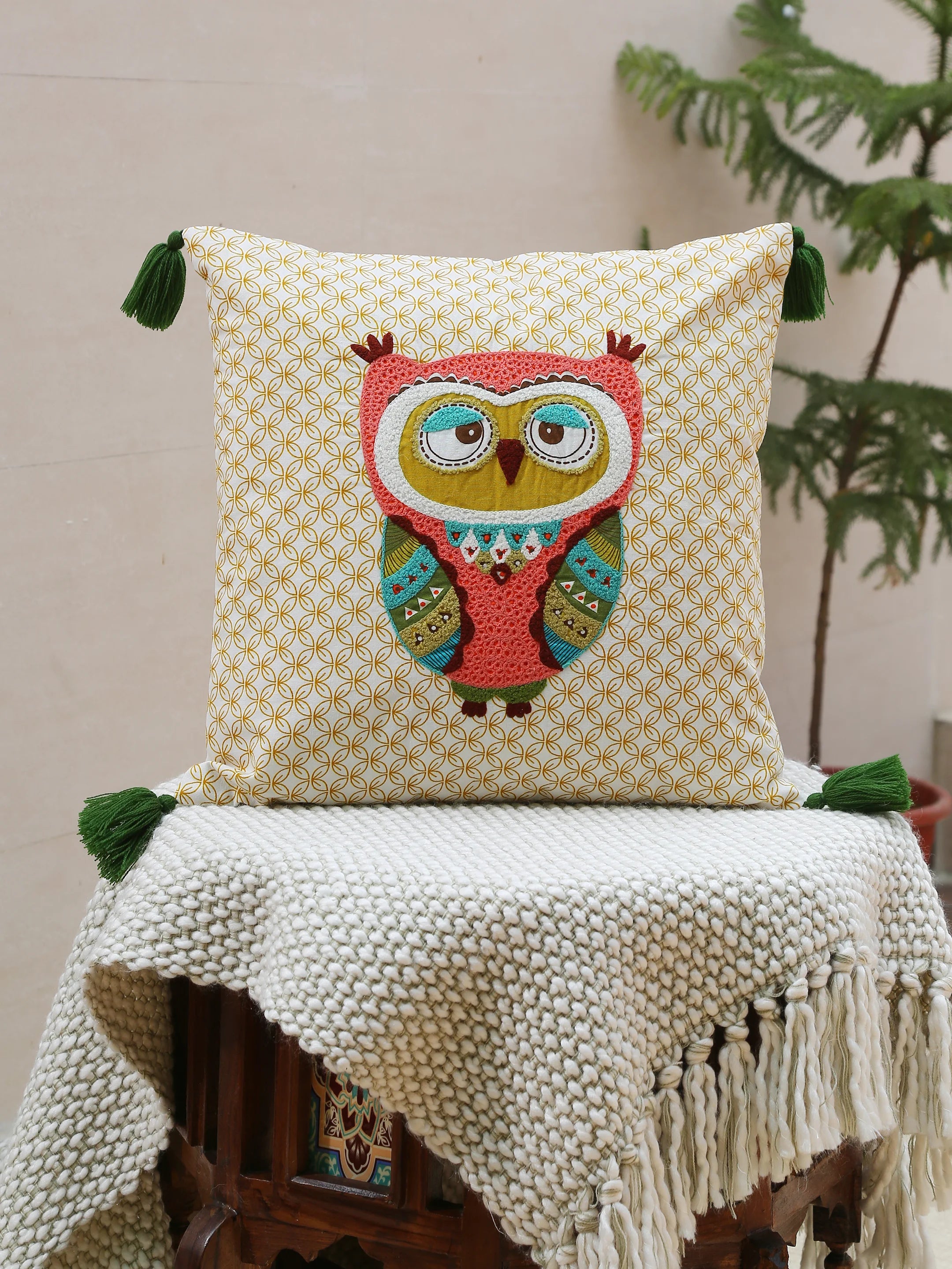 Add the quirky charm to your décor. Bring home this unique Owl design cushion cover with delicate applique work and embroidery. The uniqueness and playfulness of this vibrant cushion cover will make your décor pleasant and lively. Shop the entire collection to complete the look.