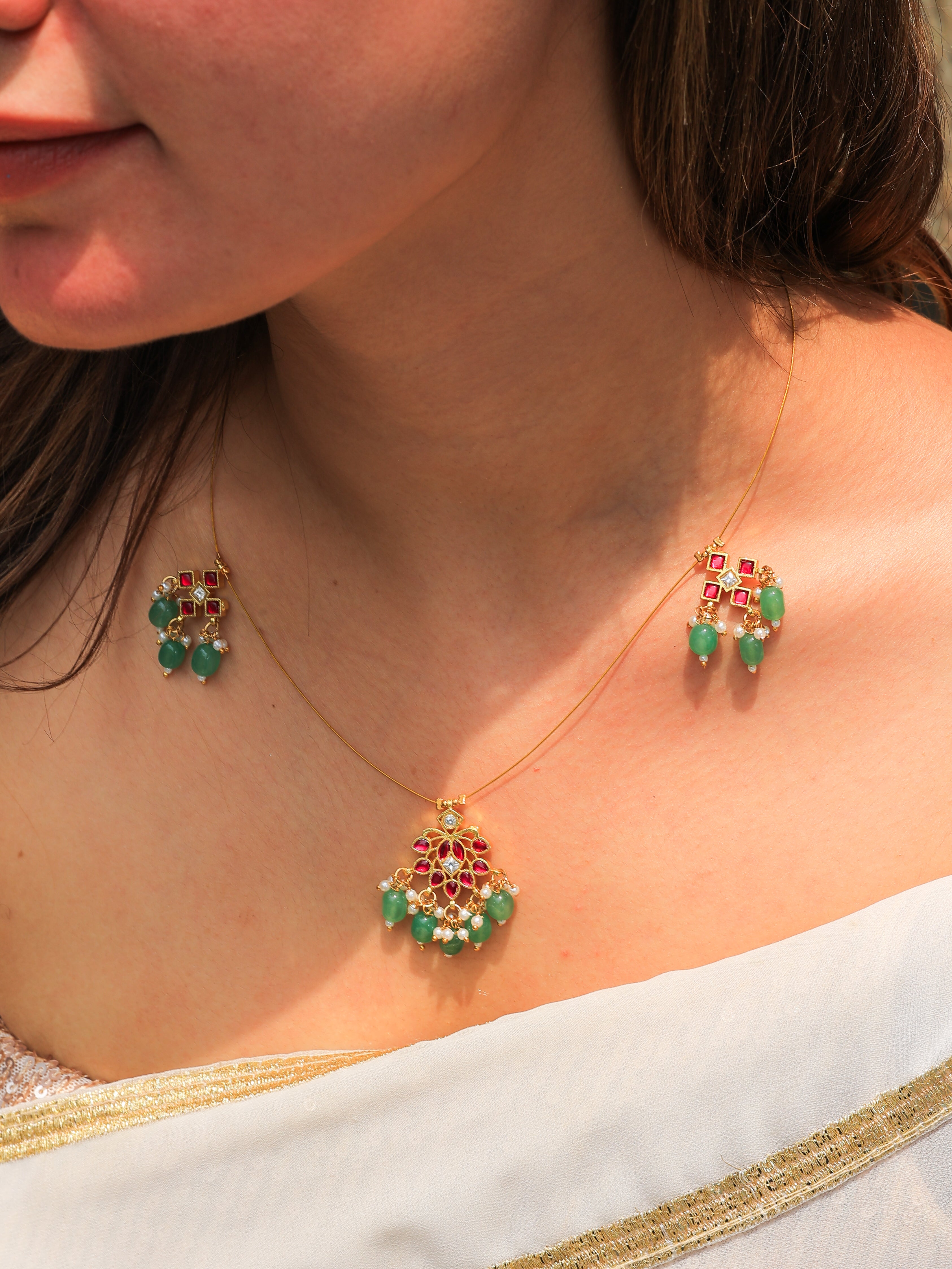 Embrace timeless elegance with this exquisite Pachi Kundan Hasli, beautifully handcrafted in a captivating Mehendi green hue. Adorned with intricate Pachi Kundan work, this traditional neckpiece radiates royal charm and showcases the finesse of age-old craftsmanship. The unique Mehendi green stones add a fresh, earthy sophistication, making it perfect for weddings, festive occasions, or elevating your ethnic ensemble with a touch of heritage luxury. A true statement piece that celebrates the richness of tradition with a graceful modern twist.