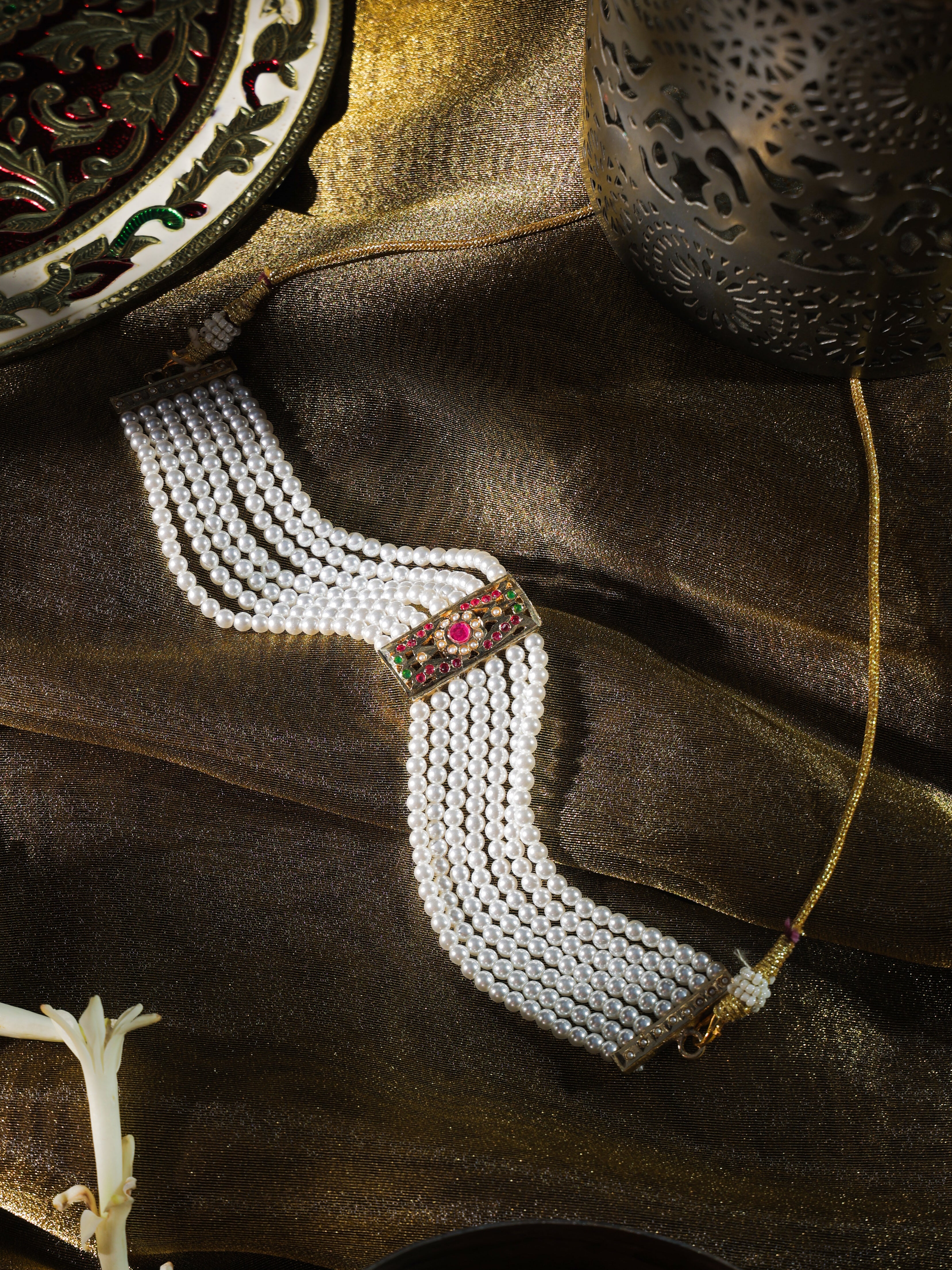 Bela Elegant Pearl Choker with Jadau gold plated pendant