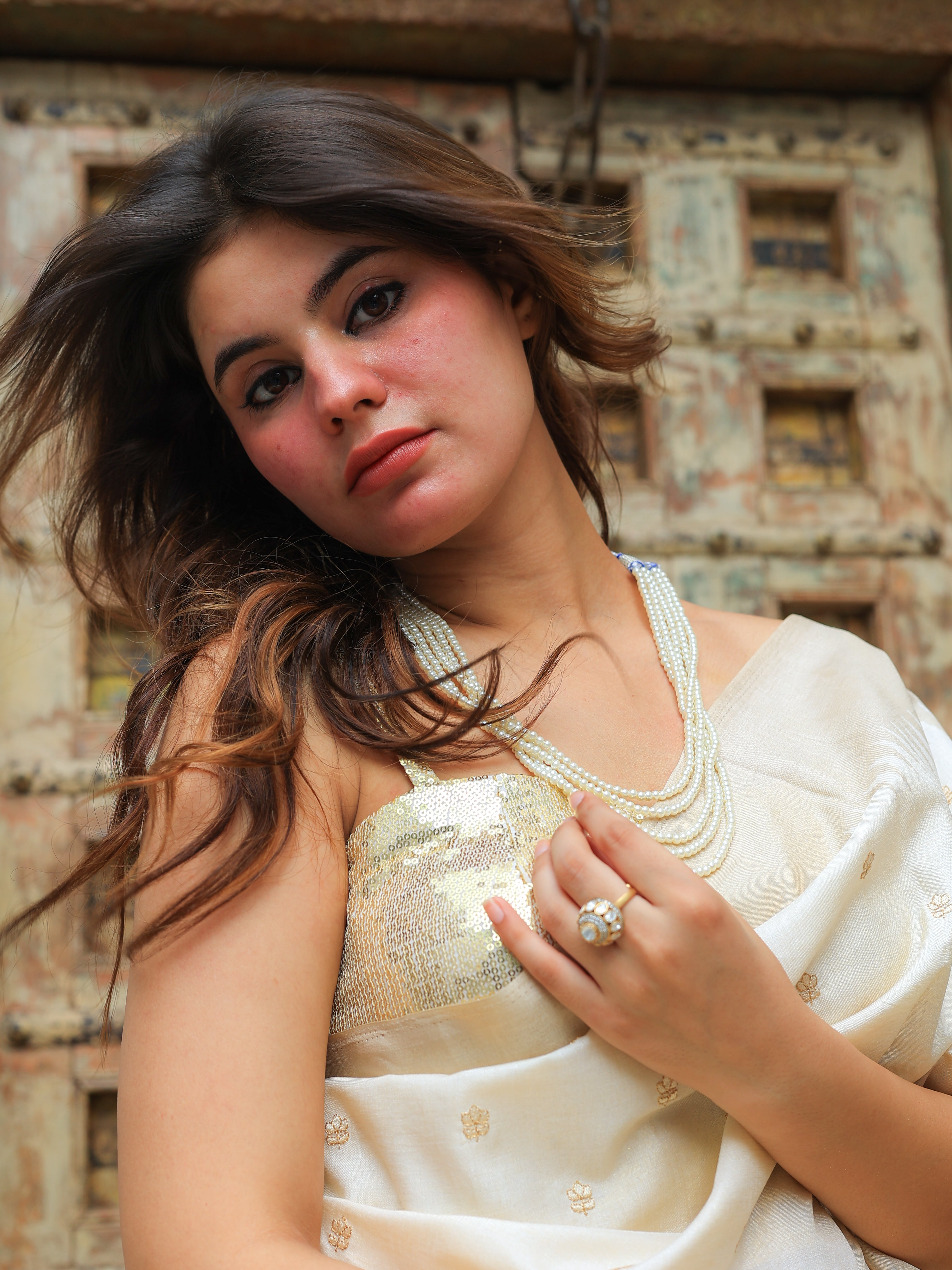 Make a grand statement with this exquisite Multilayer Pearl Mala, designed to reflect timeless beauty and regal charm. Featuring multiple strands of luminous pearls, this necklace adds volume, grace, and sophistication to any traditional or festive ensemble.