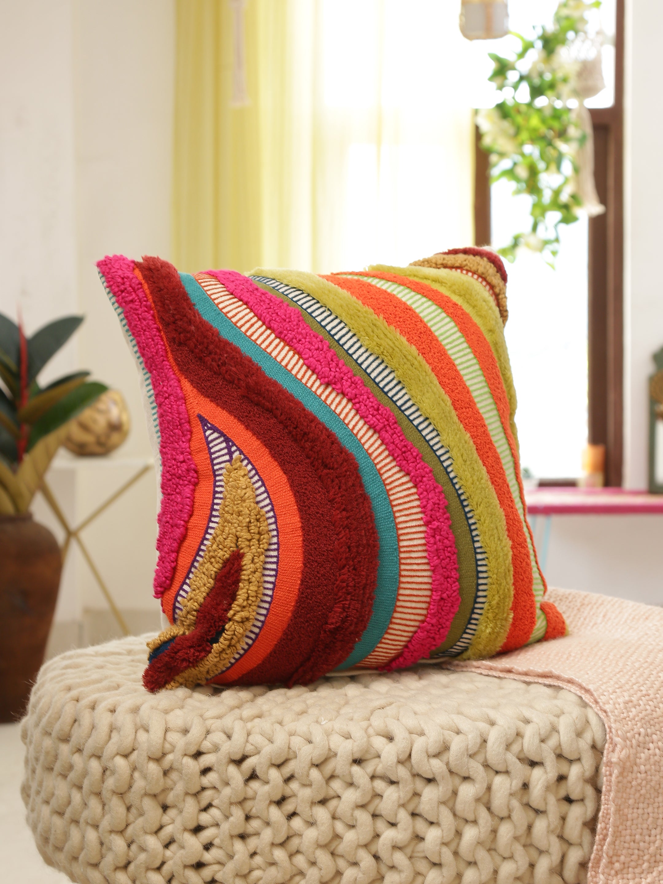 Abstract design tufted colorful cushion cover