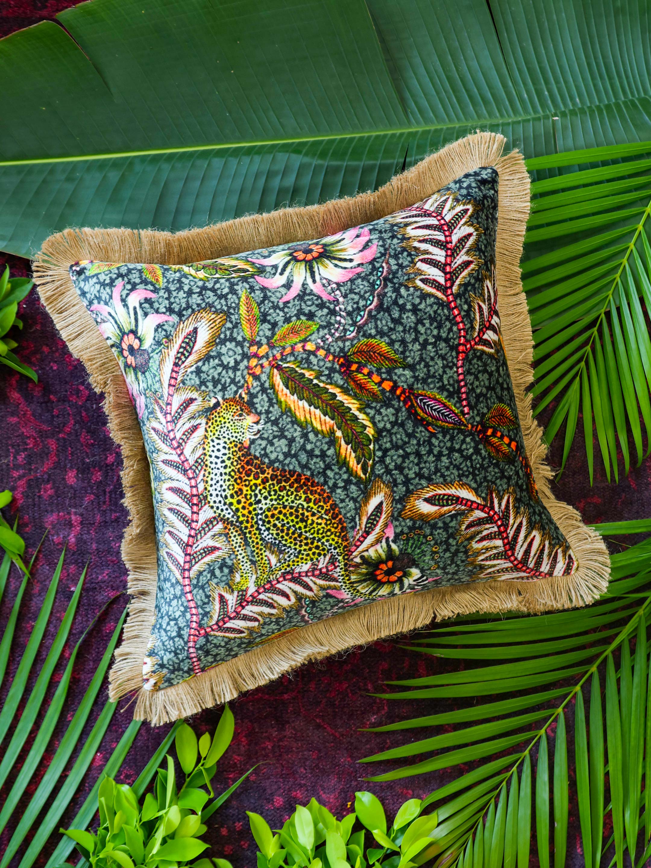 Digital Jungle Printed - Leopard Design Pillow Viscose Velvet With Trim