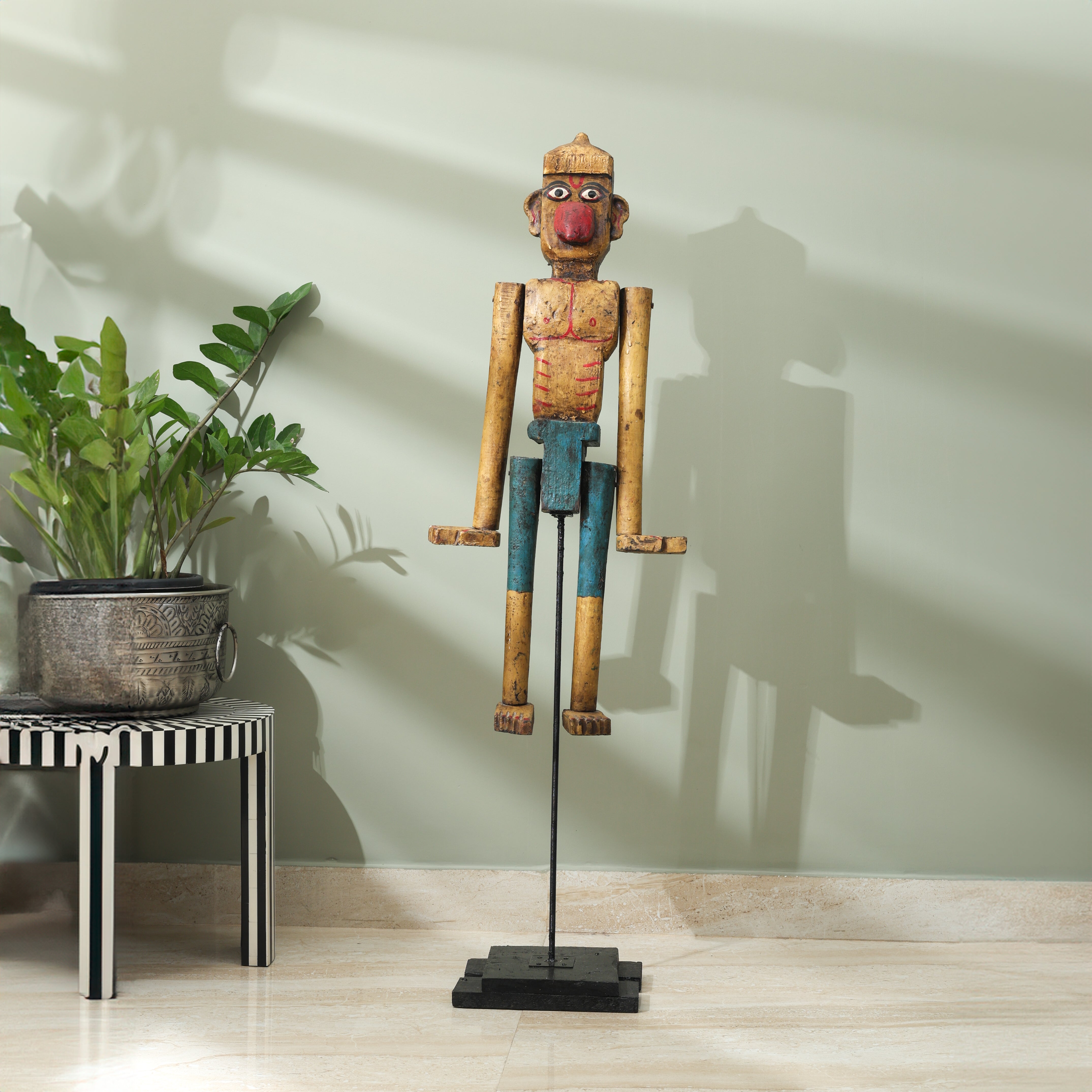 Embody the majestic spirit of Garuda, the powerful bird deity from the Ramayana, with this beautifully crafted Garuda Puppet. As the loyal mount of Lord Vishnu and a symbol of strength, courage, and protection, Garuda holds a revered place in Indian mythology. This intricately designed puppet captures Garuda’s grandeur and divine essence, making it a stunning piece for cultural performances, storytelling, or as an artistic display.