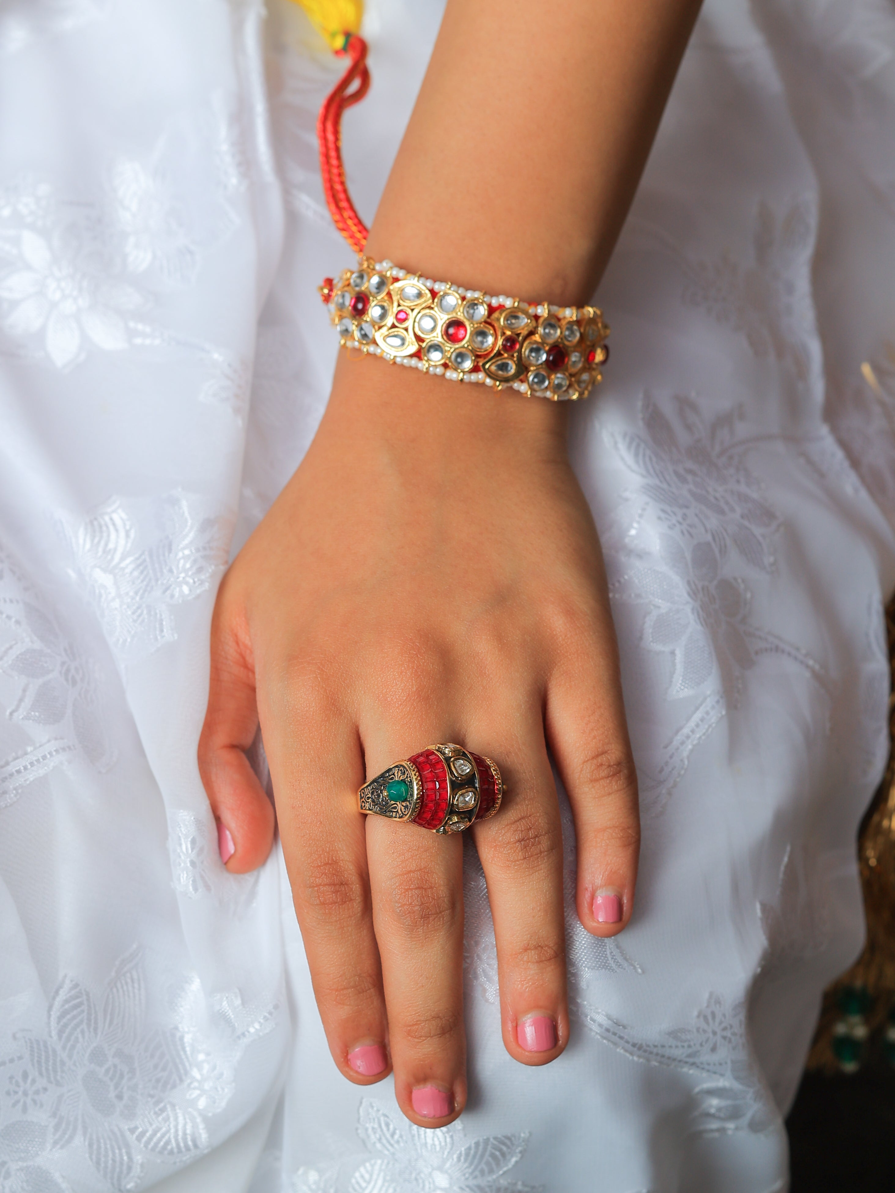 Elevate your traditional look with this majestic Shiva Kundan ring, crafted in high-quality brass alloy to beautifully mimic the elegance of real jewellery. Featuring a bold design with rich ruby and green stones, this piece captures the essence of heritage and devotion with a royal twist.