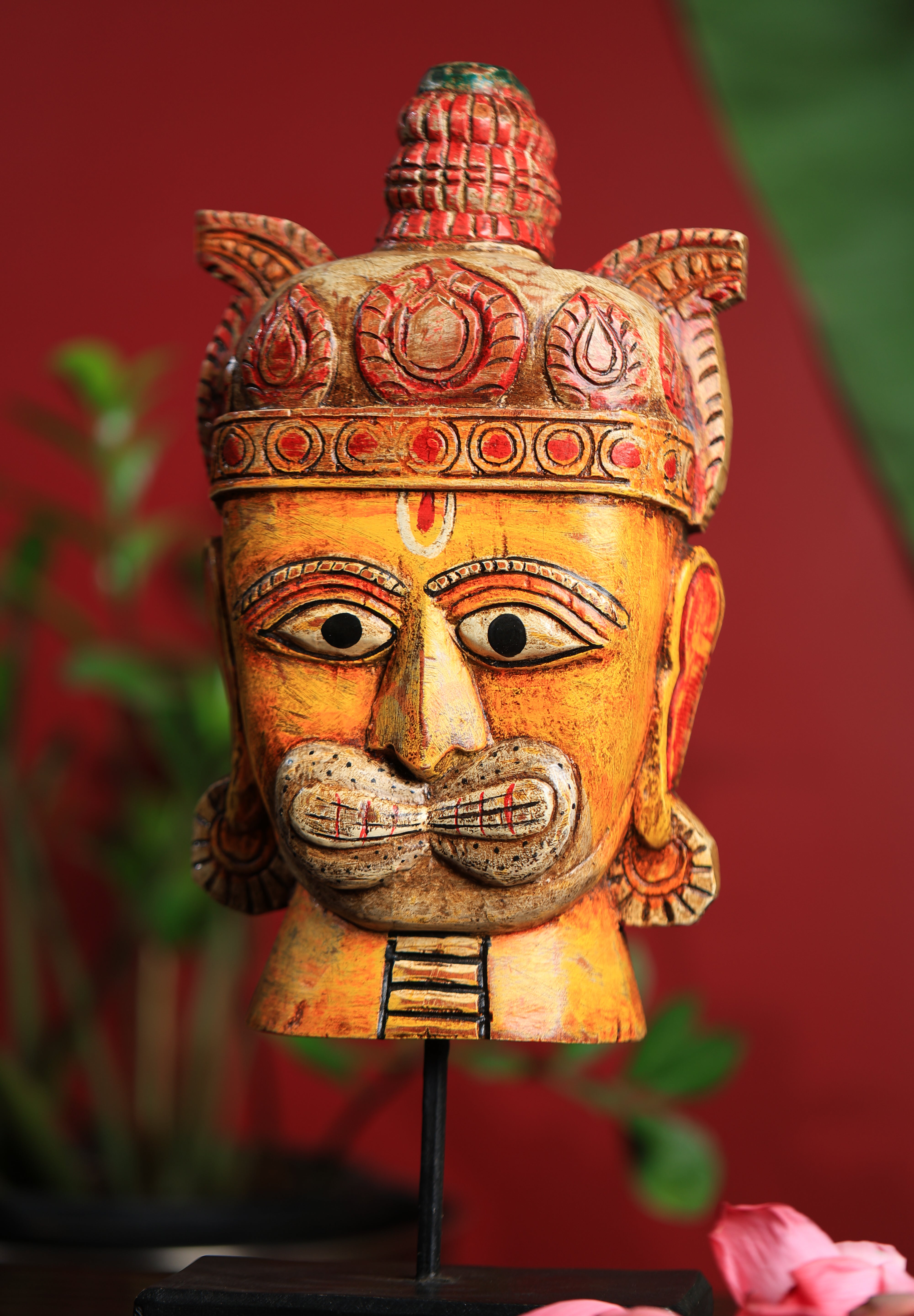 Elevate your space with this exquisite hand-painted wooden Hanuman decor, crafted in a heritage style and elegantly mounted on a sturdy iron stand. A perfect blend of spirituality and artistry, this masterpiece embodies tradition, strength, and devotion.