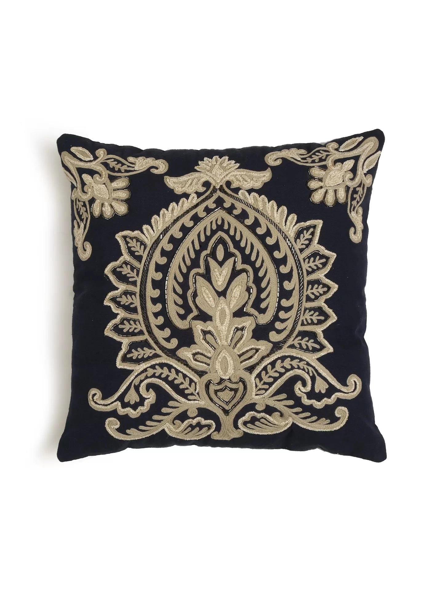 Add a regal touch to your décor with this beautiful embroidered and cushion with hand beading. The exclusive embroidery and the elegant design will add a royal feel to your living spaces