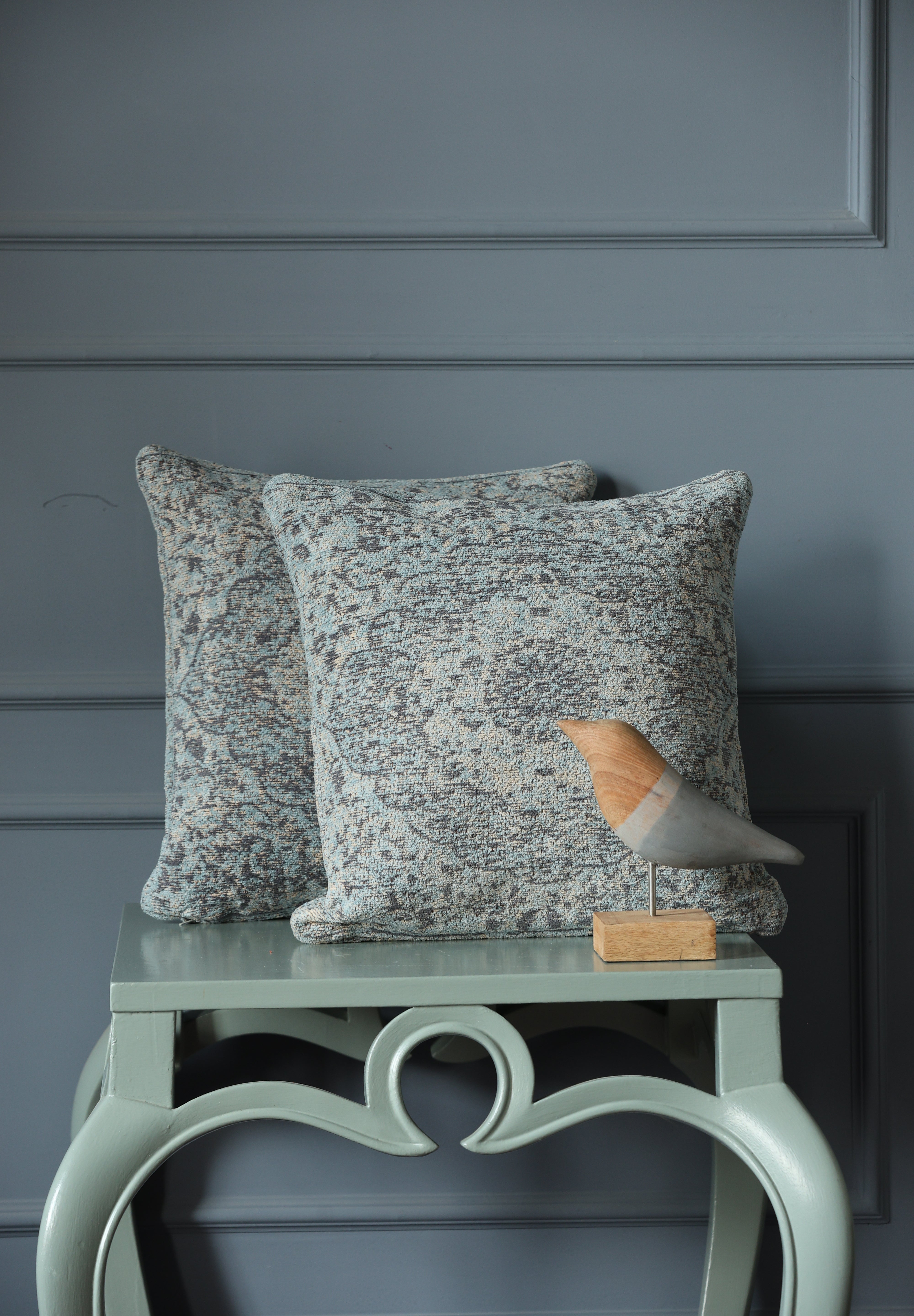 Woven Jacquard Cotton Chenille Cushion cover features amazing craft and artistry. Gorgeous tonal variations create that are heathered to perfection. Beautiful blues, woven in an Persian inspired design, provide a flexible palette with an arresting motif.