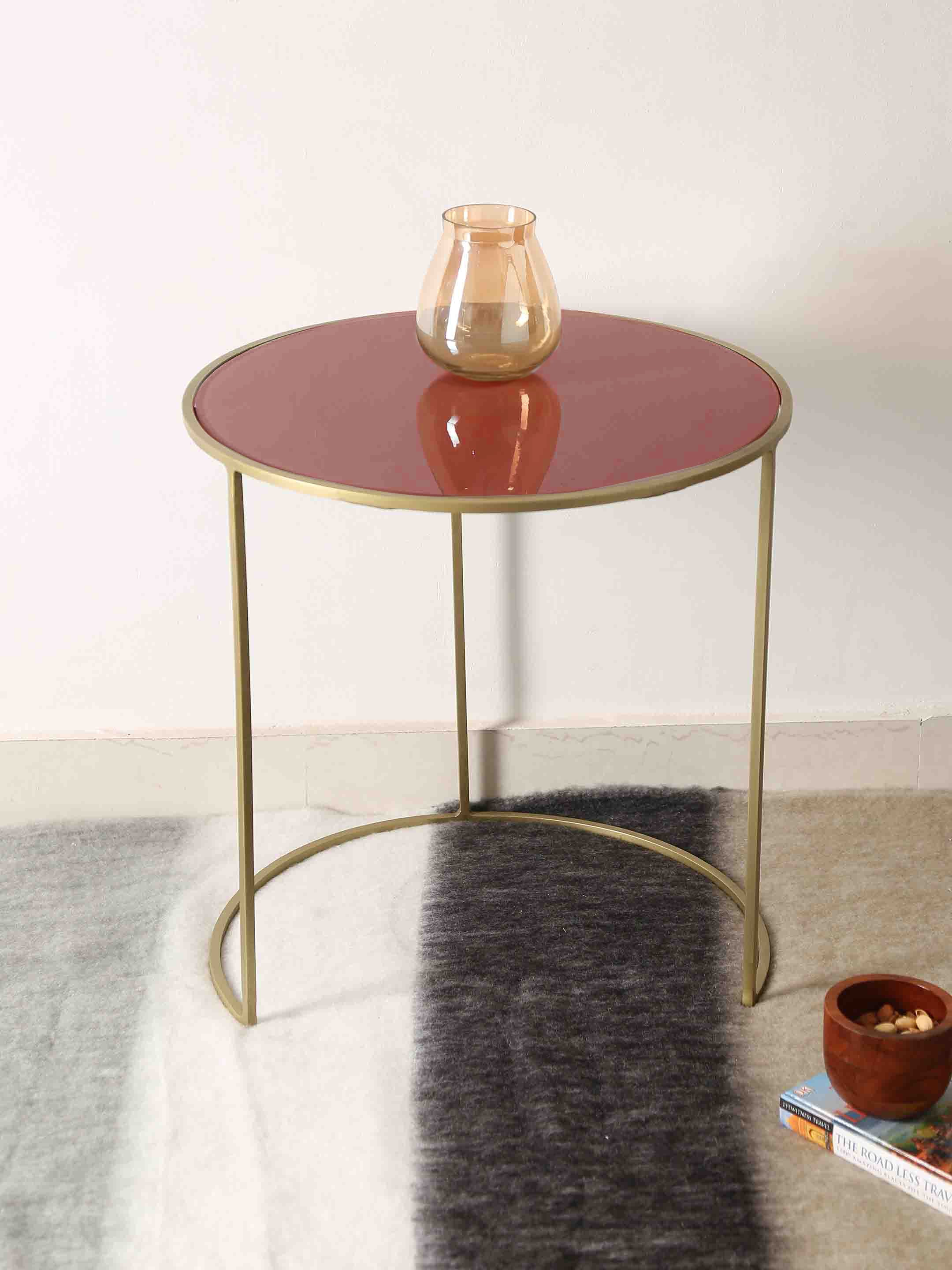 Nesting Tables - Pale Ruby Color Glass Top - Set of 2 is backordered and will ship as soon as it is back in stock.