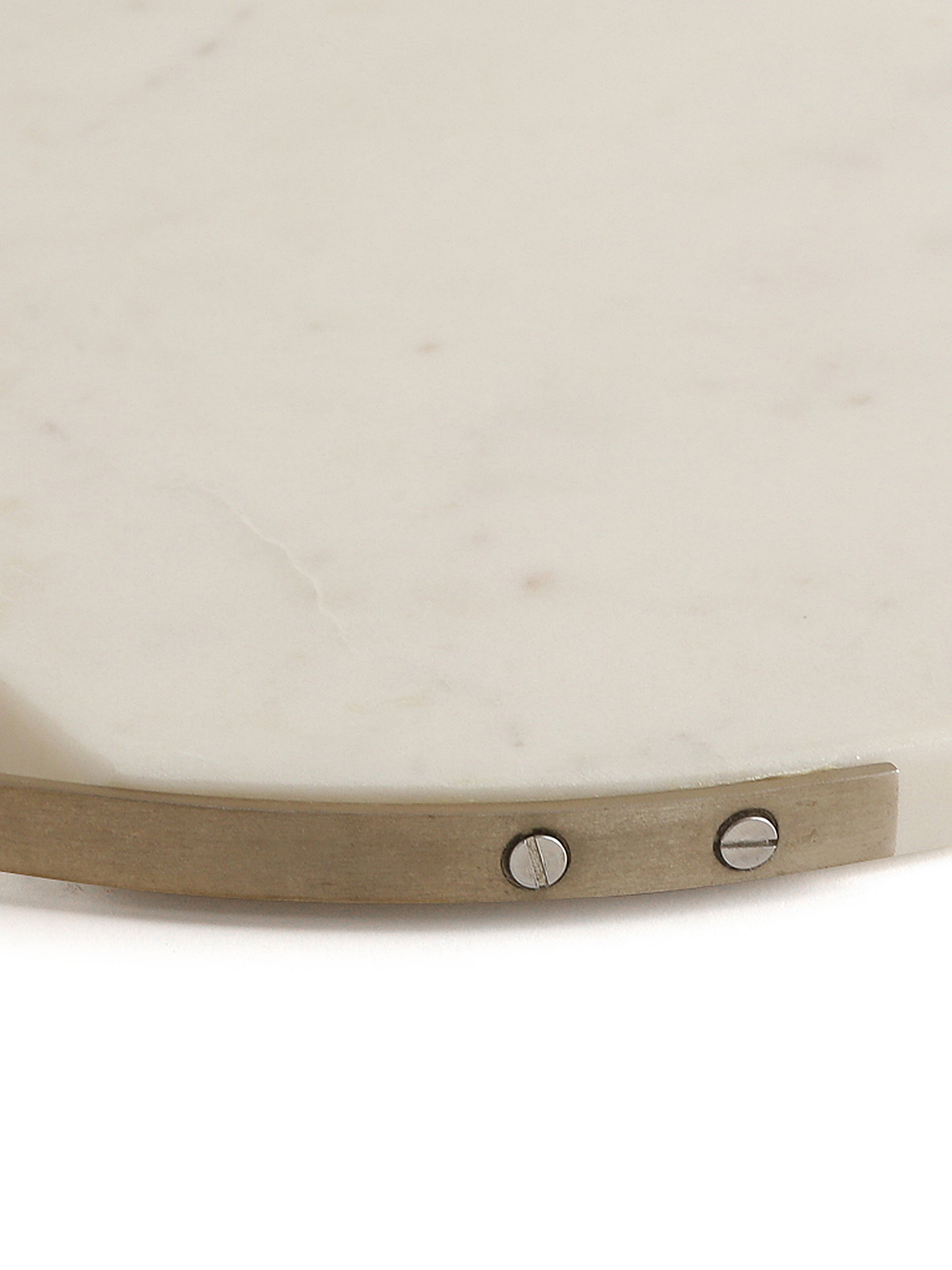 Marble platters or cheese boards always add classic Elegance to your serving. This marble board with a Gold-tone rim and handle is a classic addition to your collection.