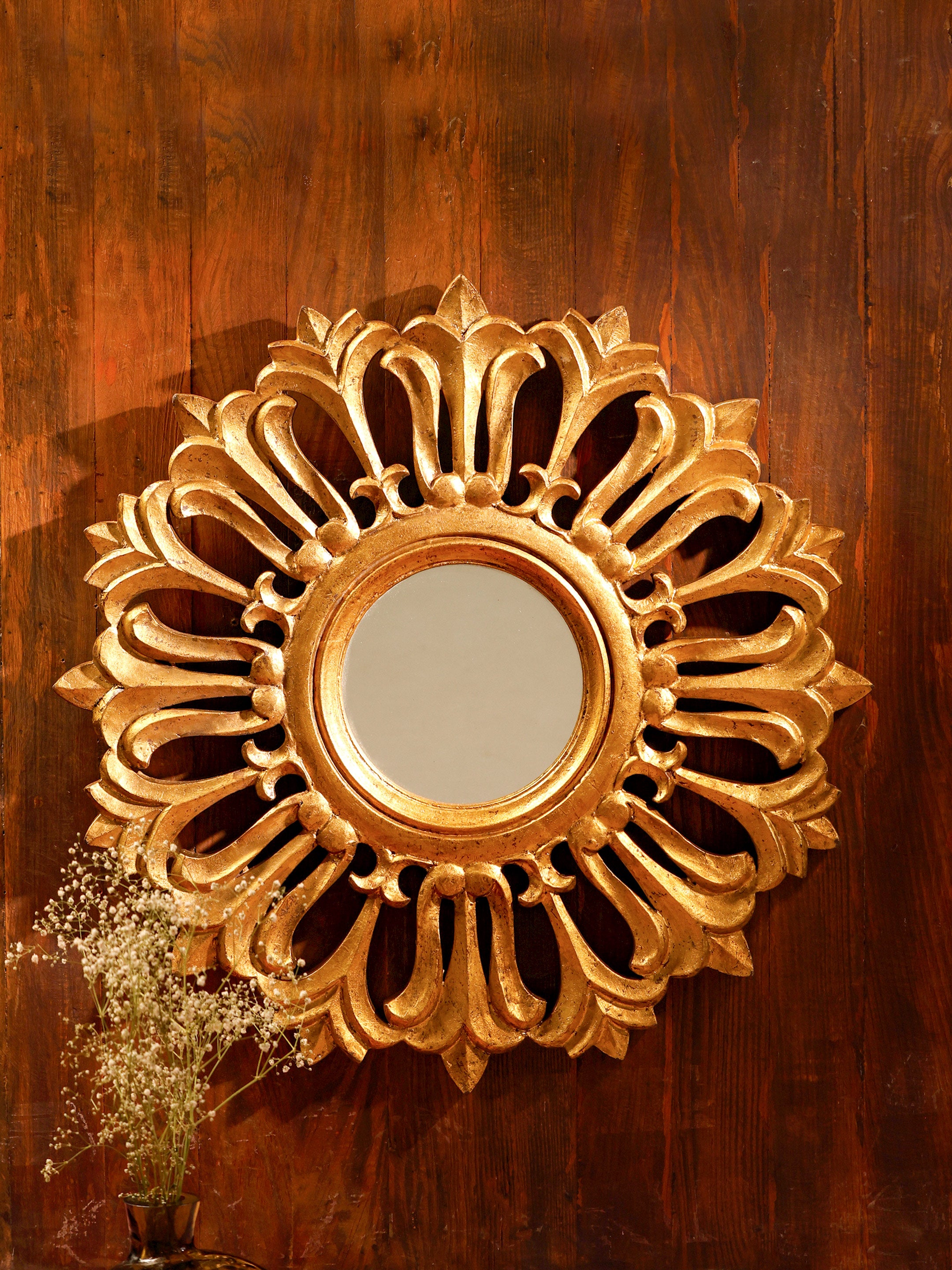 Carved Mirror Frame - Elegance in Gold Foil Round Mirrors
