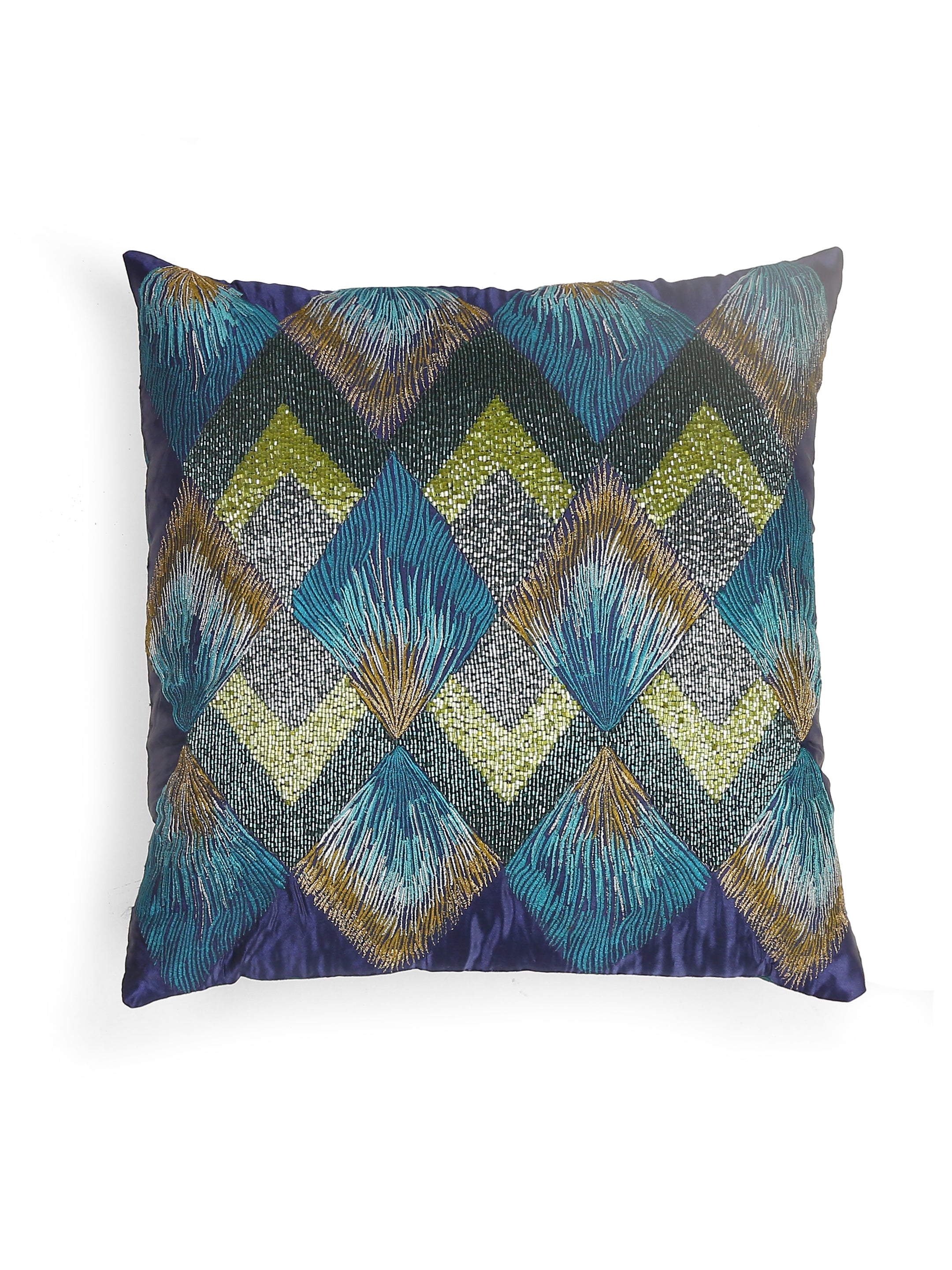 This cushion reminds of a peacock with its beautiful feathers. This stunning hand-crafted embellished and embroidered cushion cover will add a panache to any living space. Combine with other cushions from this collection to complete the look