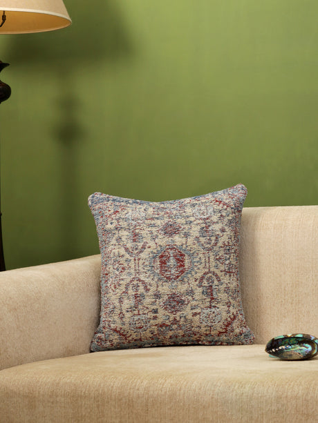 Persian Motif - Beige & Multicolor Jacquard Chenille Cushion Cover
