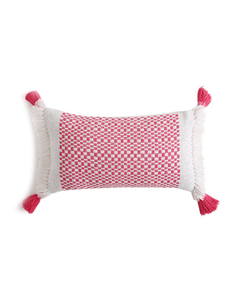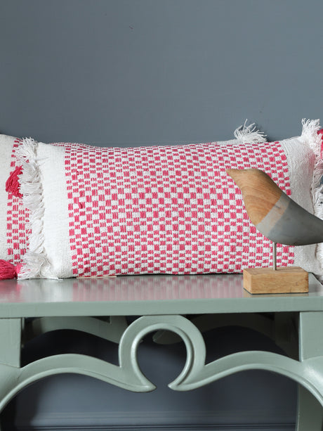 Cushion Cover - Pink And White Hand Woven With Pink Tassels