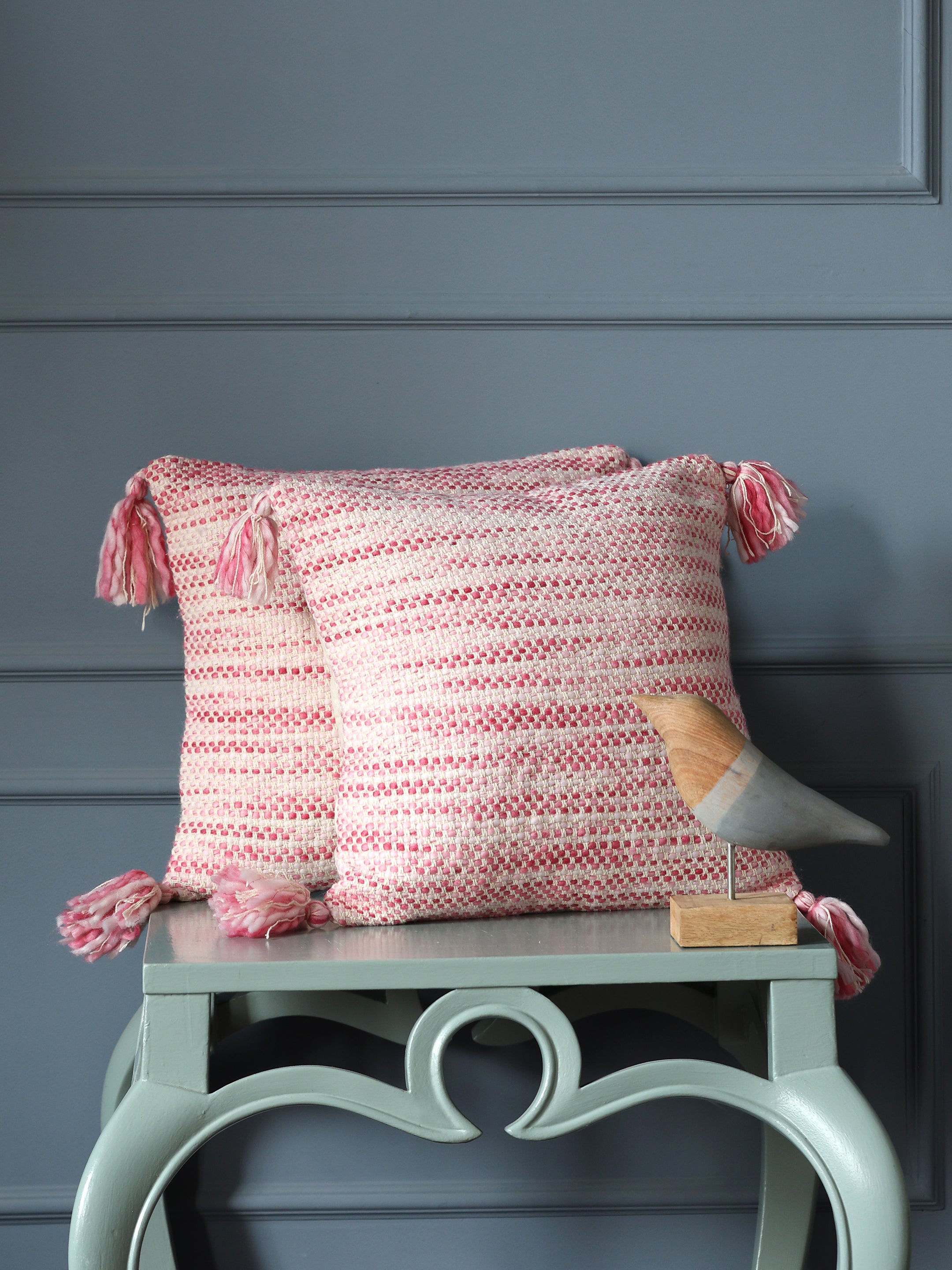 Ivory and Pink Cushion Cover with Tassels (Set of 2)