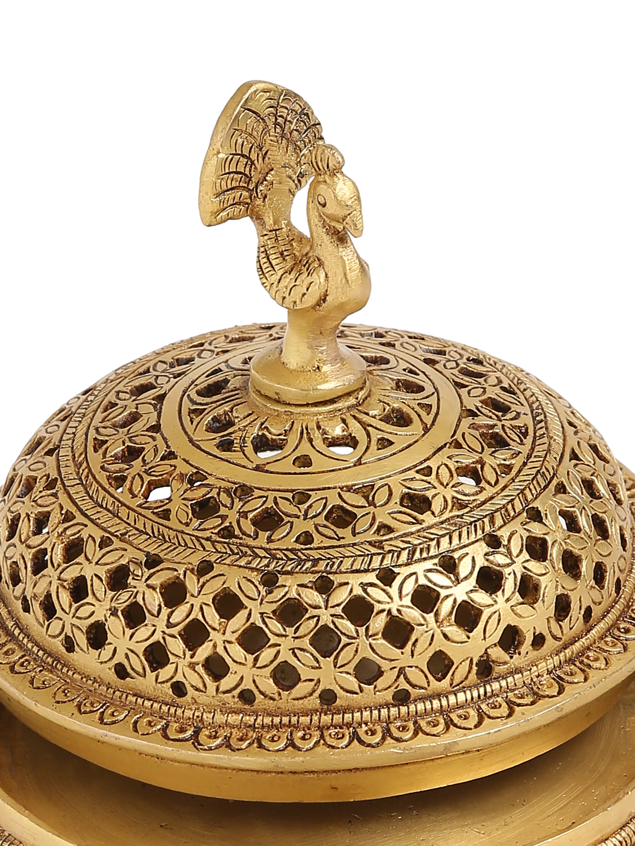 Dhoop Dani - Brass peacock incense burner with tortoise base