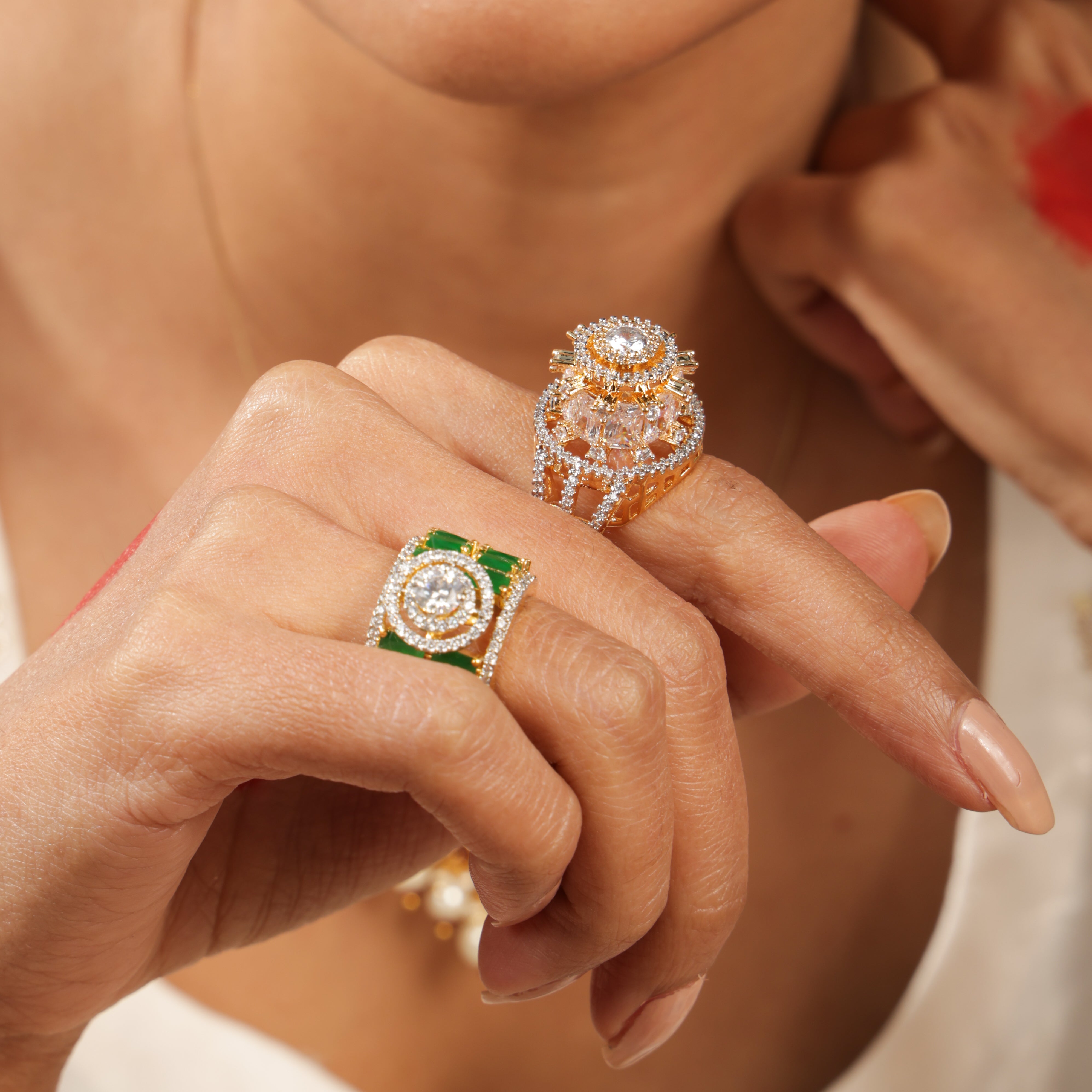 Banu Emerald Elegance Diamond Halo stone Statement Ring