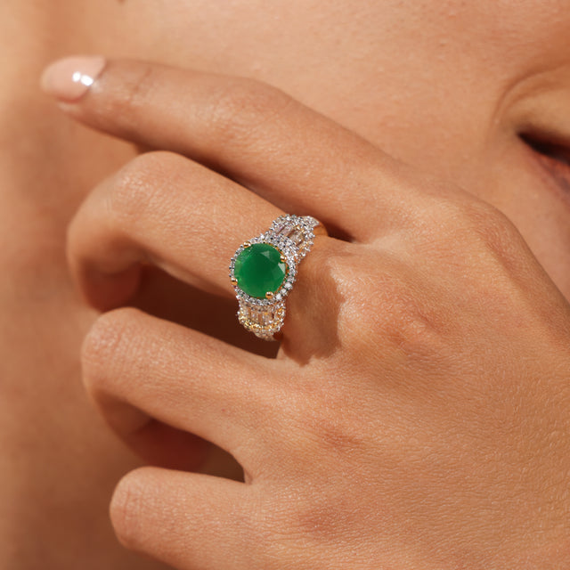 Roya Emerald Glow Diamond Halo stone Statement Ring