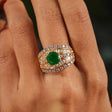 Laleh Regal Green Diamond Halo stone Statement Wave Ring