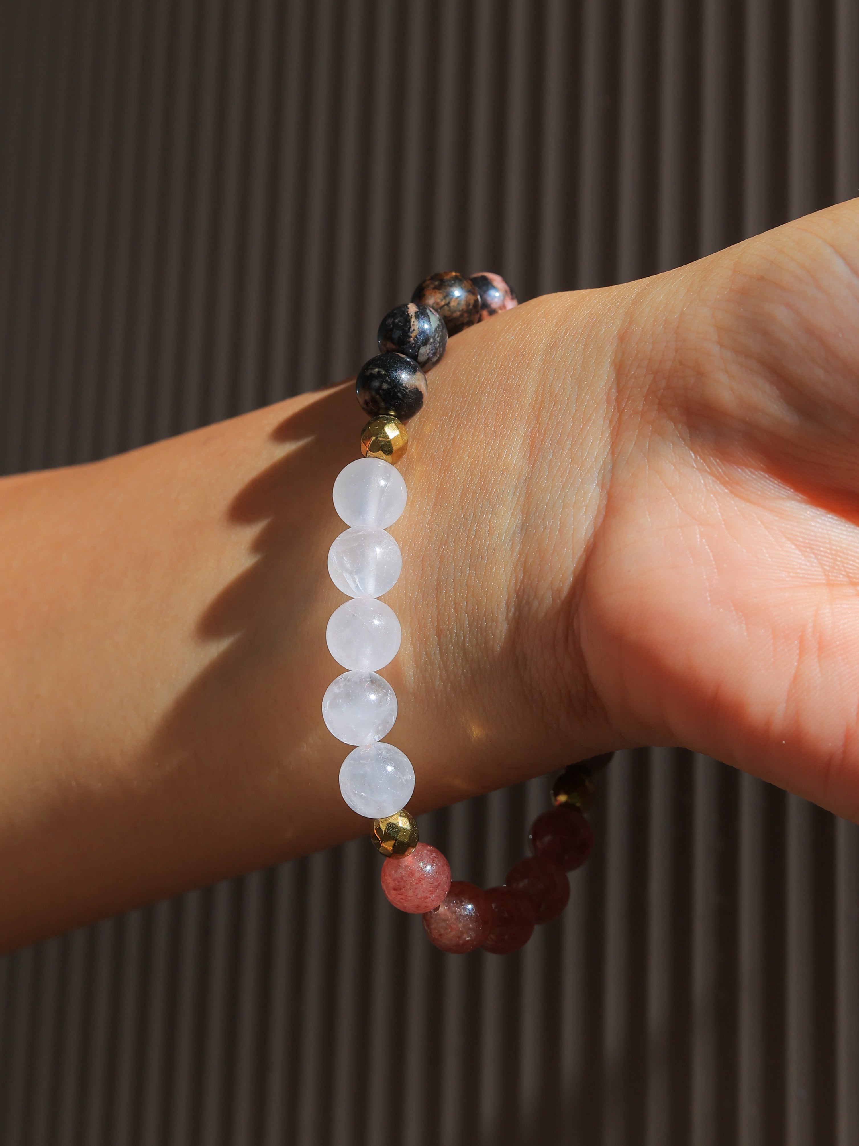 Crafted with the intention of ultimate love, this bracelet is a potent combination of stones that work harmoniously to heal, attract, and magnify love in all its forms. Whether it is self-love, romantic love, or universal love, wearing this bracelet aligns your heart with the purest vibrations of love and compassion.Benefits of Crystal Intention Bracelet