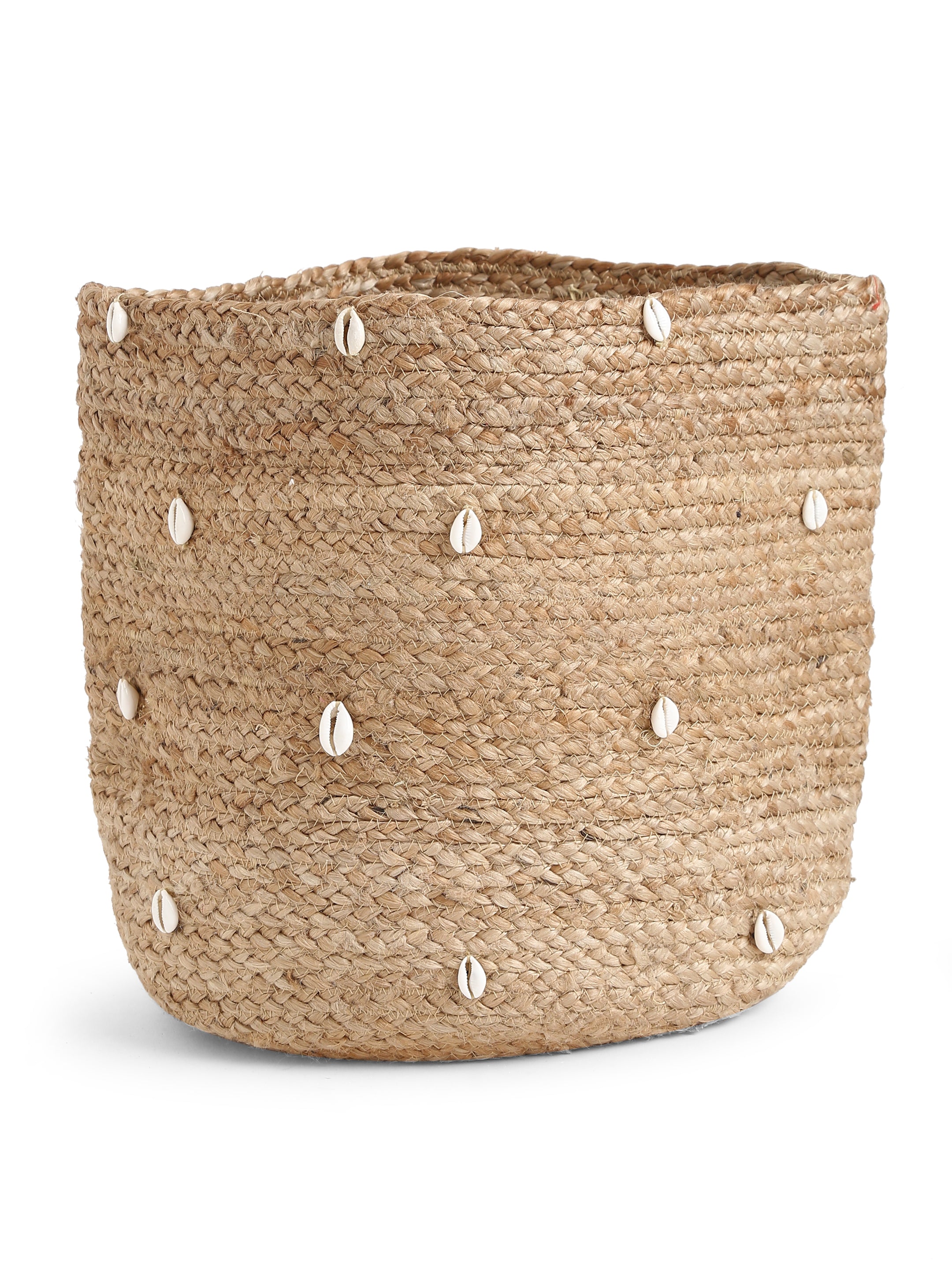 Multi-Utility Jute Basket with Shell Details in Natural Finish