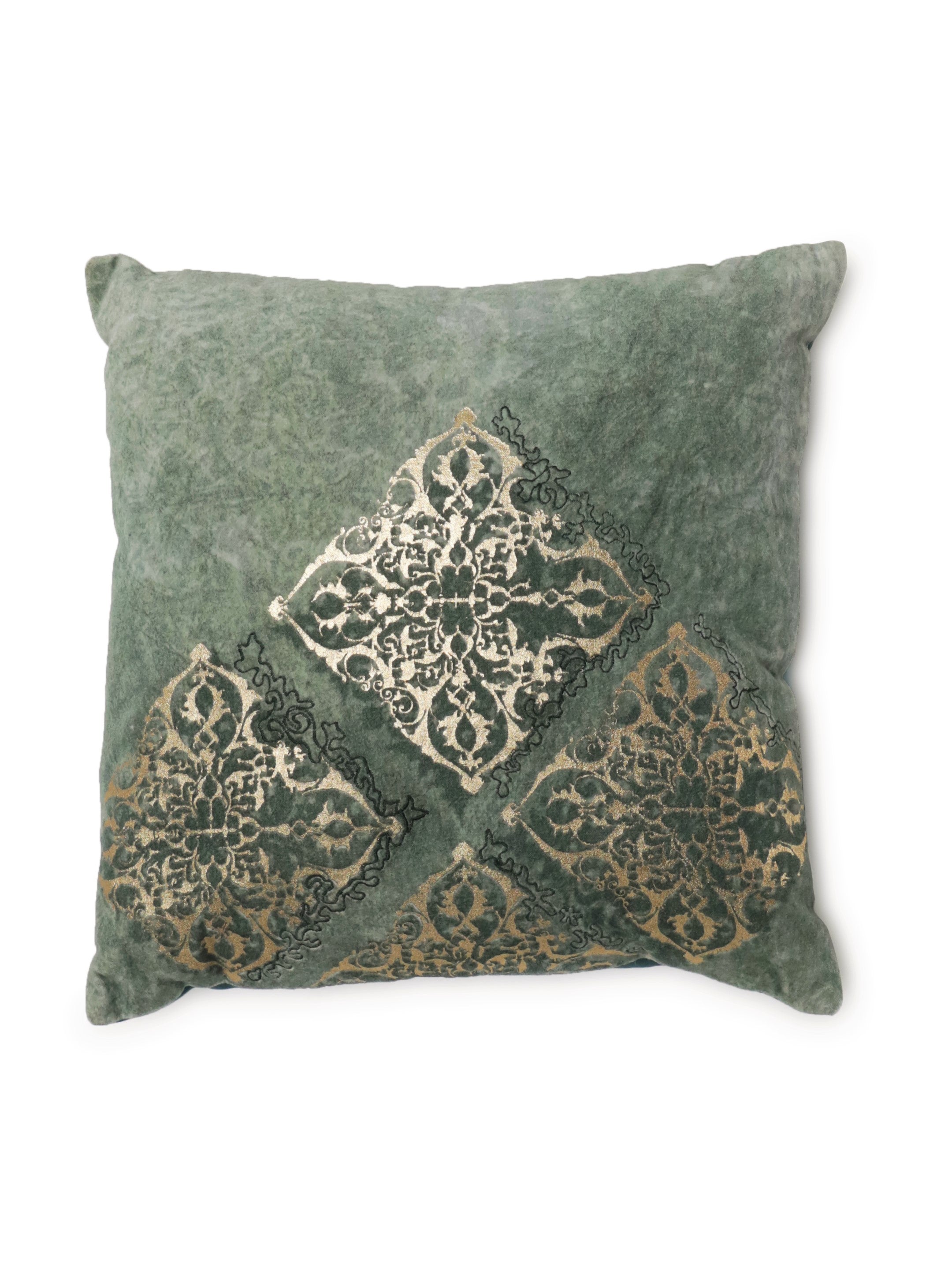 Golden Foil Printed embroidered cushion cover in Green self print is backordered and will ship as soon as it is back in stock.