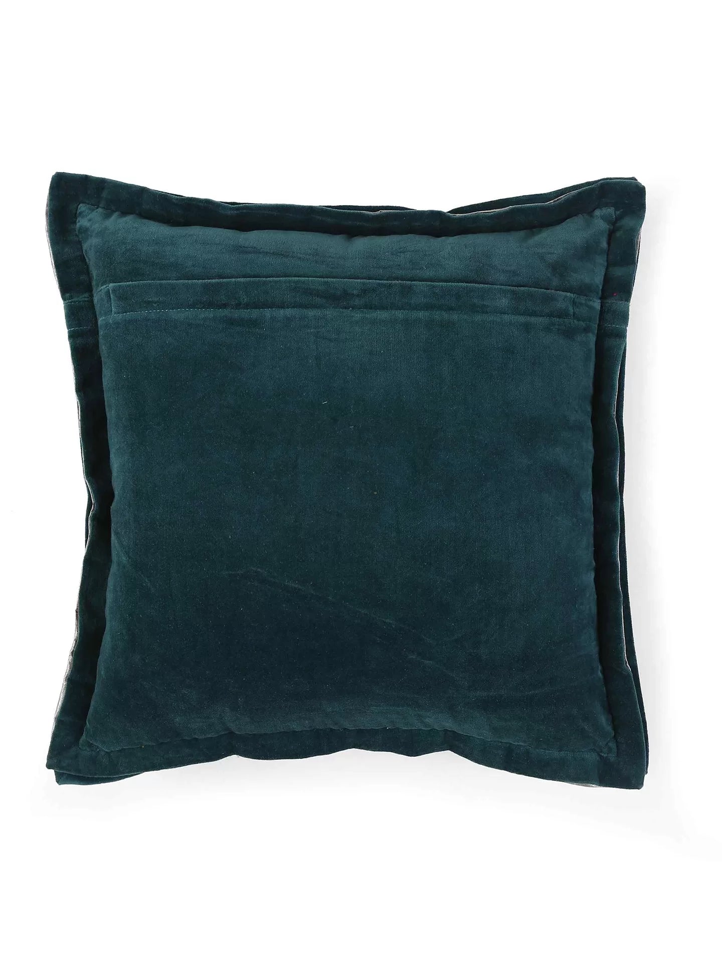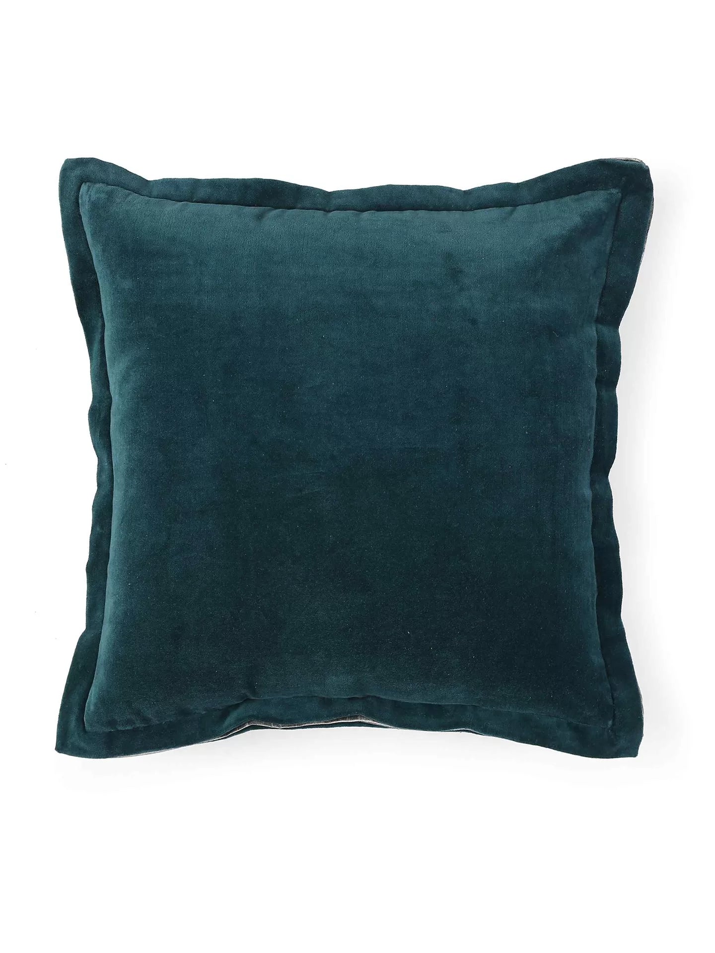 Cotton Velvet Cushion Cover - Teal With Contrast Border Trim