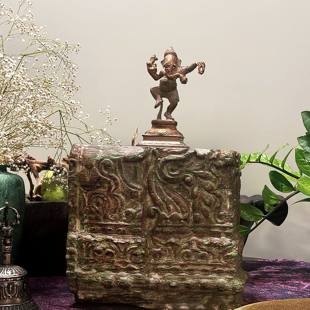 This hand carved wood block is remnant of old haveli or houses from western India These blocks features ornamental elements that were carefully hand chiseled by a craftsmen These hand carved a stunning piece has been handpainted in beautiful punchy colours and can be used as ornamental element in any corner of house