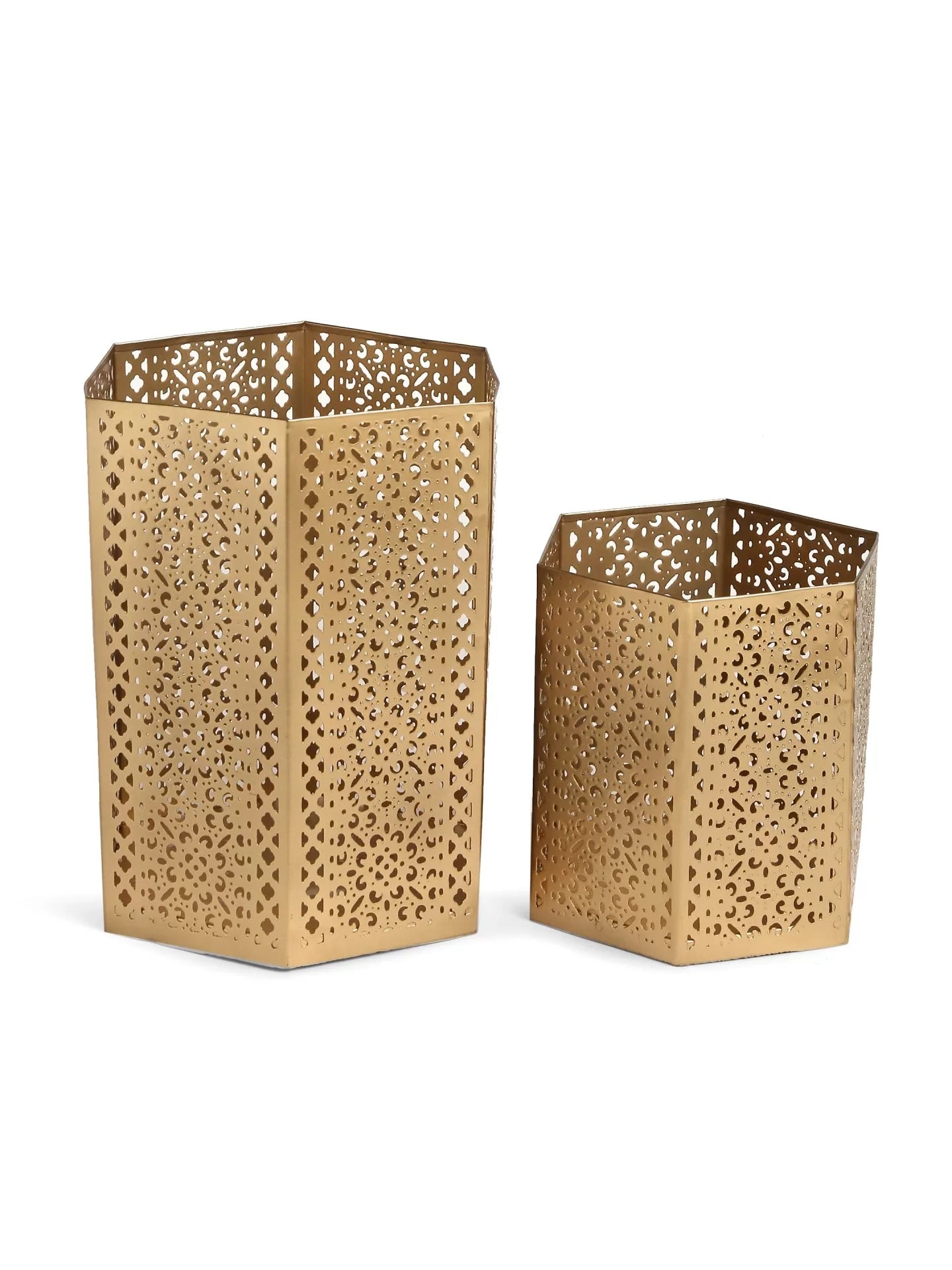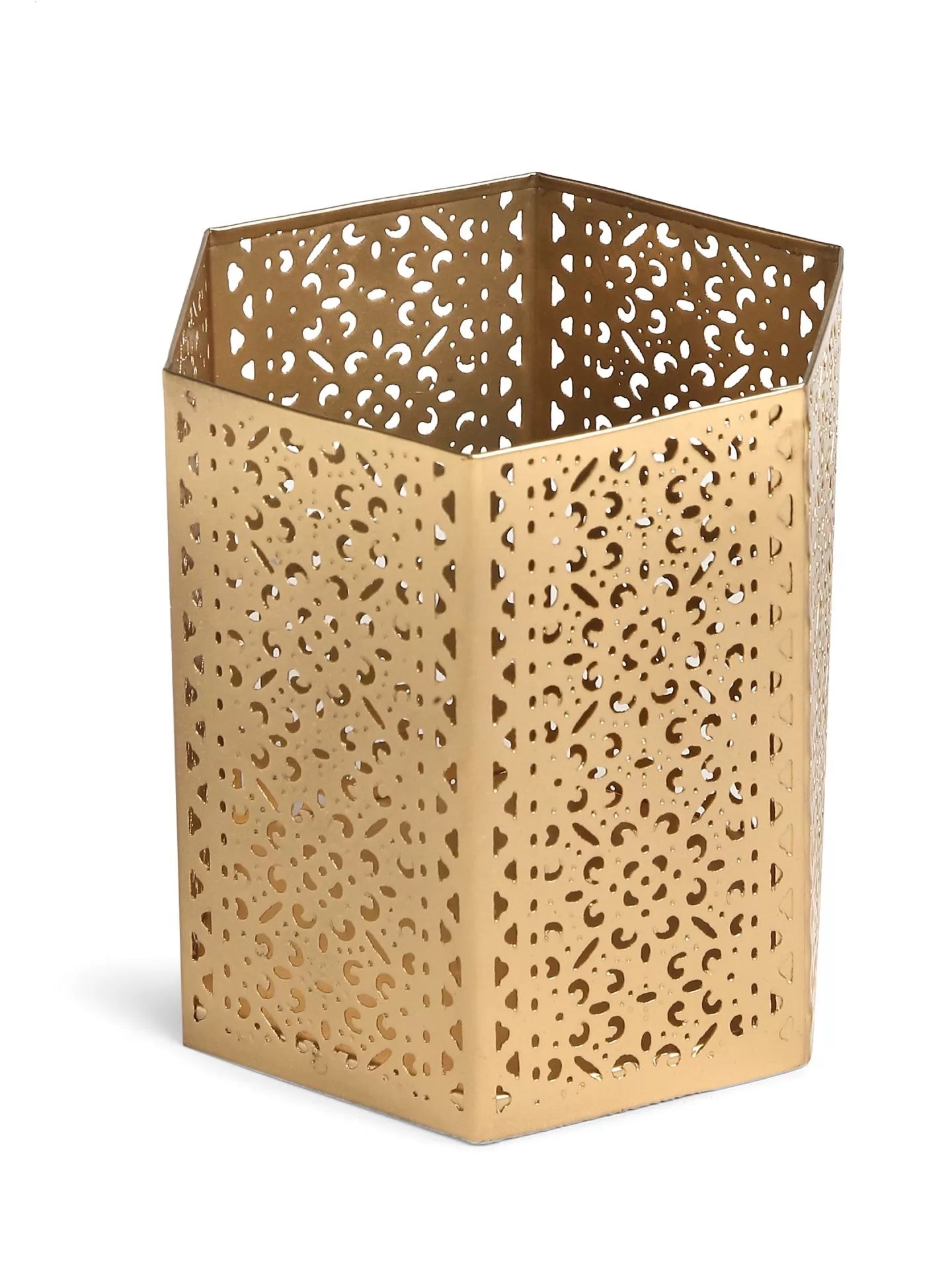 This antique gold finish pc adds a rustic charm to your décor. These beautiful design candle holders add a royal touch to your décor. Ideal for festive décor or gifting