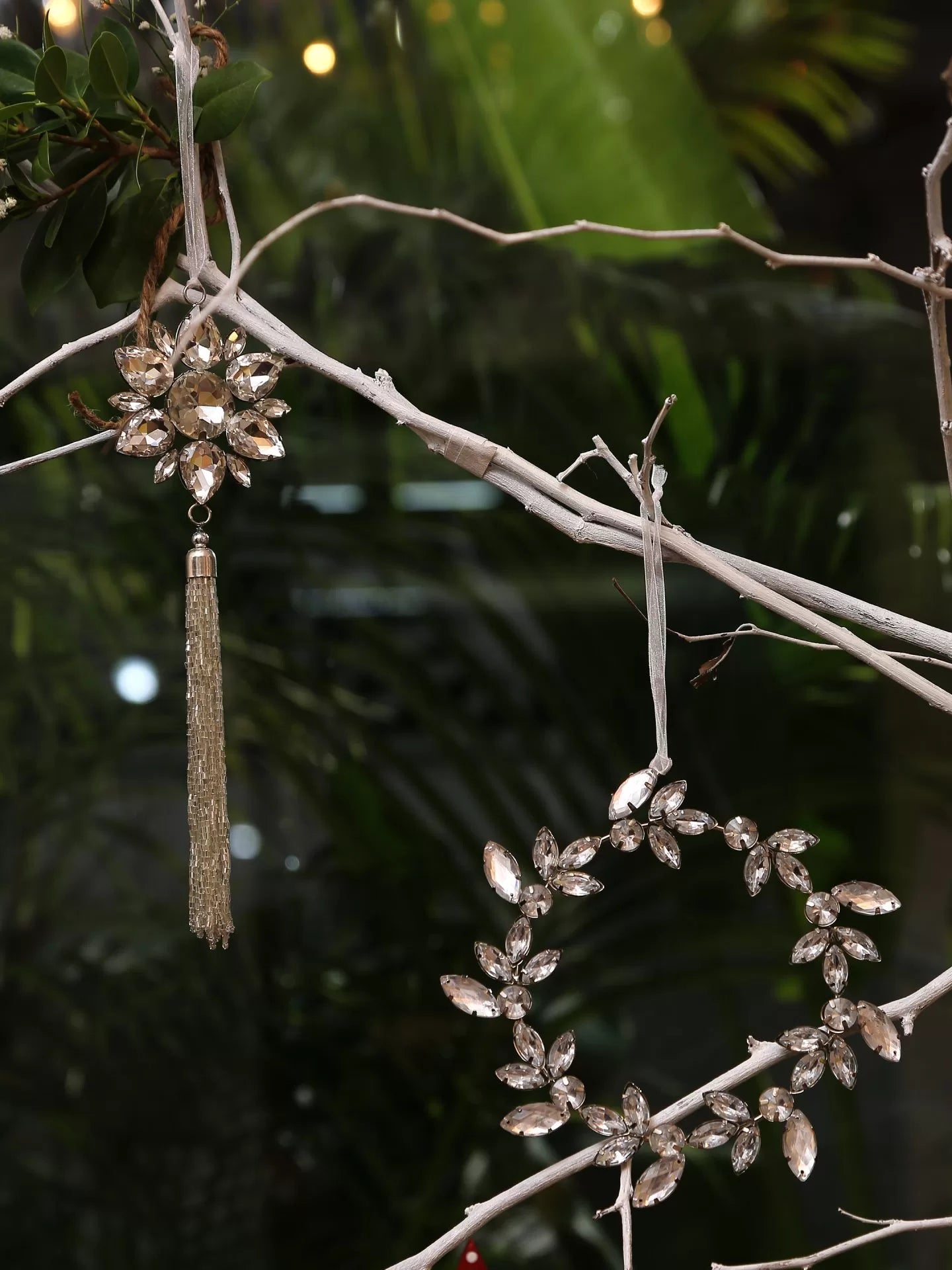 The crystal shimmer and the beaded tassel make these ornaments really beautiful and exclusive. Decorate your tree or your living spaces with these beautiful pcs to get Christmas ready. Combine with other ornaments and wreath from this collection to complete the look.