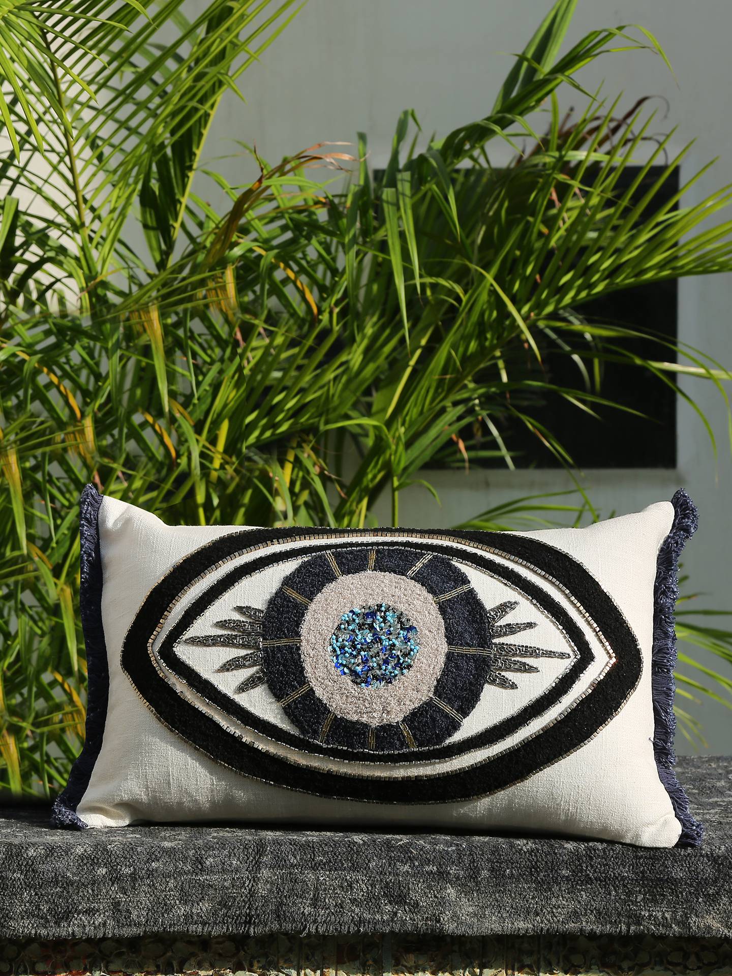 Cushion Cover - Embellished Evil Eye is backordered and will ship as soon as it is back in stock.