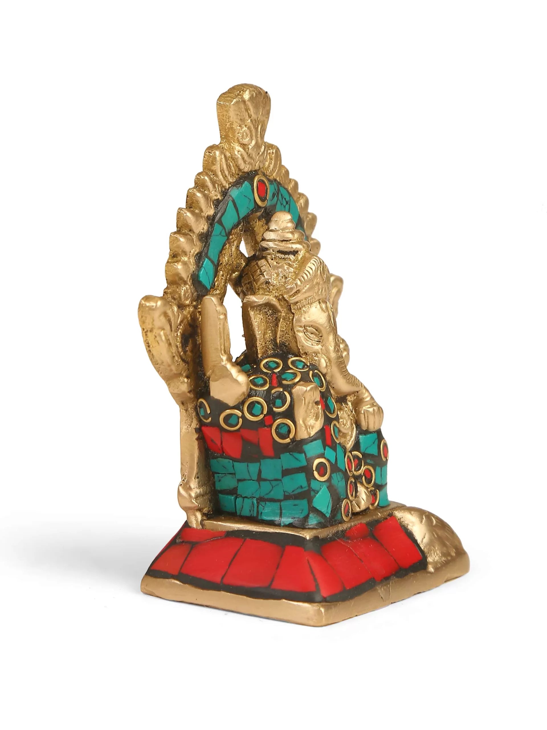 The favorite lord of lords, Ganesha helps his devotees in the preservation of balance, hindering the progression of evil and removing obstacles from the paths of goodness. Ganpati removes all obstacles to success. This stone work colorful Ganesha in brass is a beautiful addition to your hone.