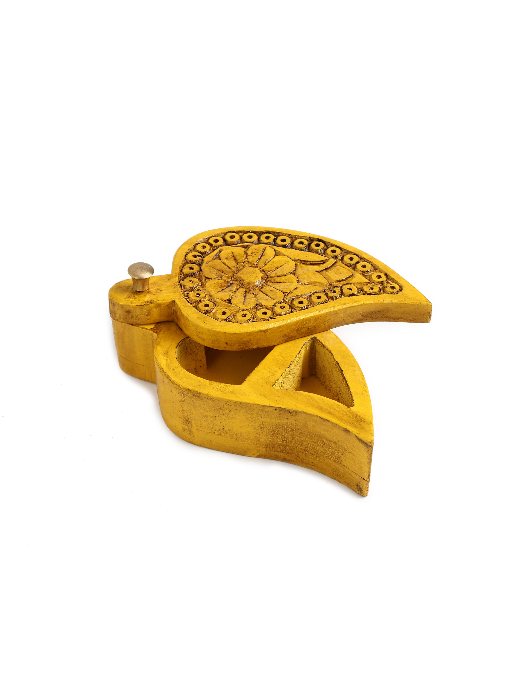 Hand crafted Wooden box with carved flower - Yellow