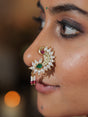 Celebrate the timeless beauty of Maharashtrian tradition with our Kundan Nose Clip. Handcrafted with intricate detailing and embellished with sparkling kundan stones, this piece reflects cultural heritage with a touch of regal charm. Perfect for weddings, festive occasions, and traditional ceremonies, it adds grace and authenticity to your look.