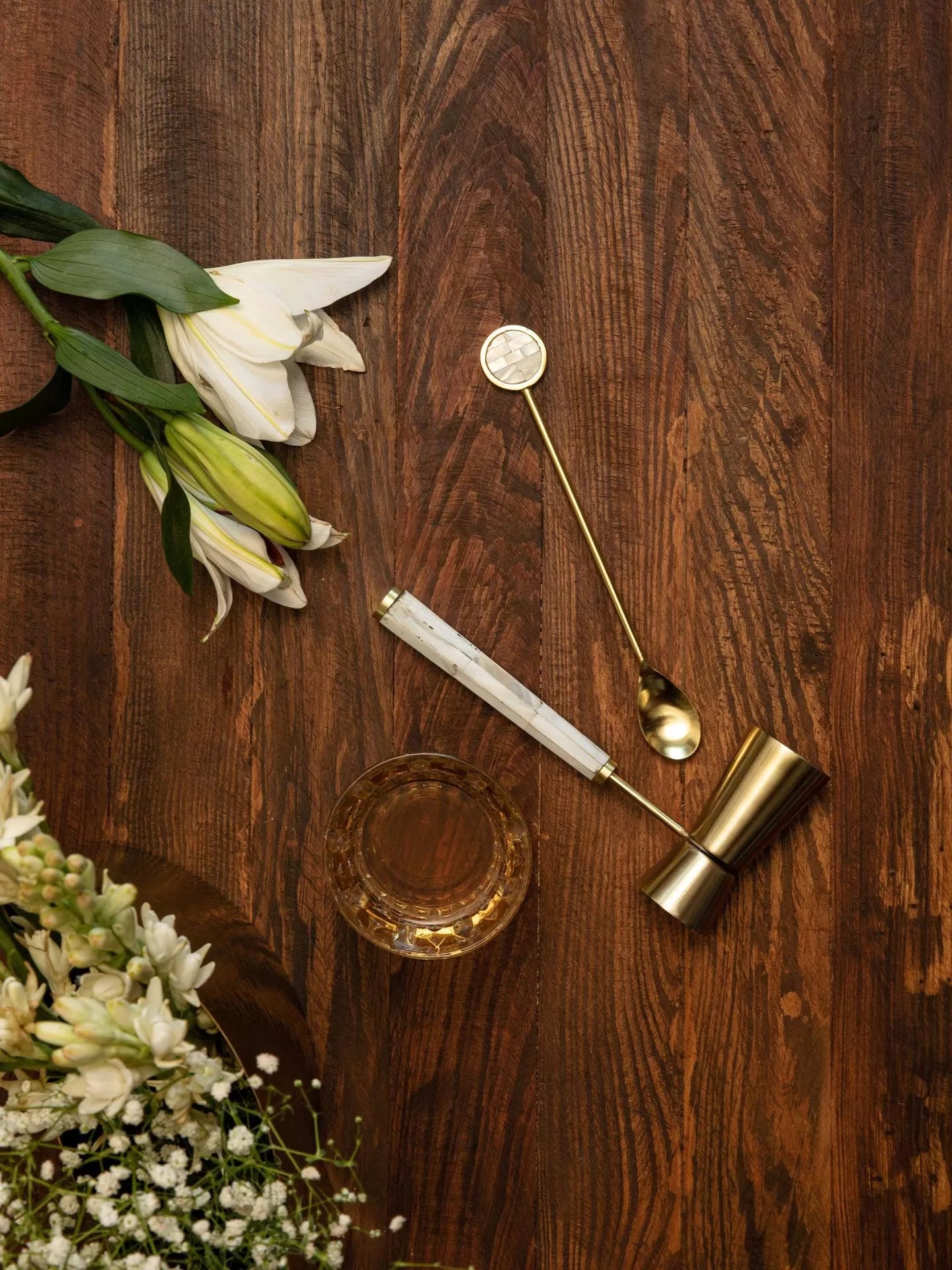 Give your guests luxurious experience with this elegant bar tool set, hand crafted in high quality MOP. The combination of MOP with Golden creates sophisticated ambience for your serving.