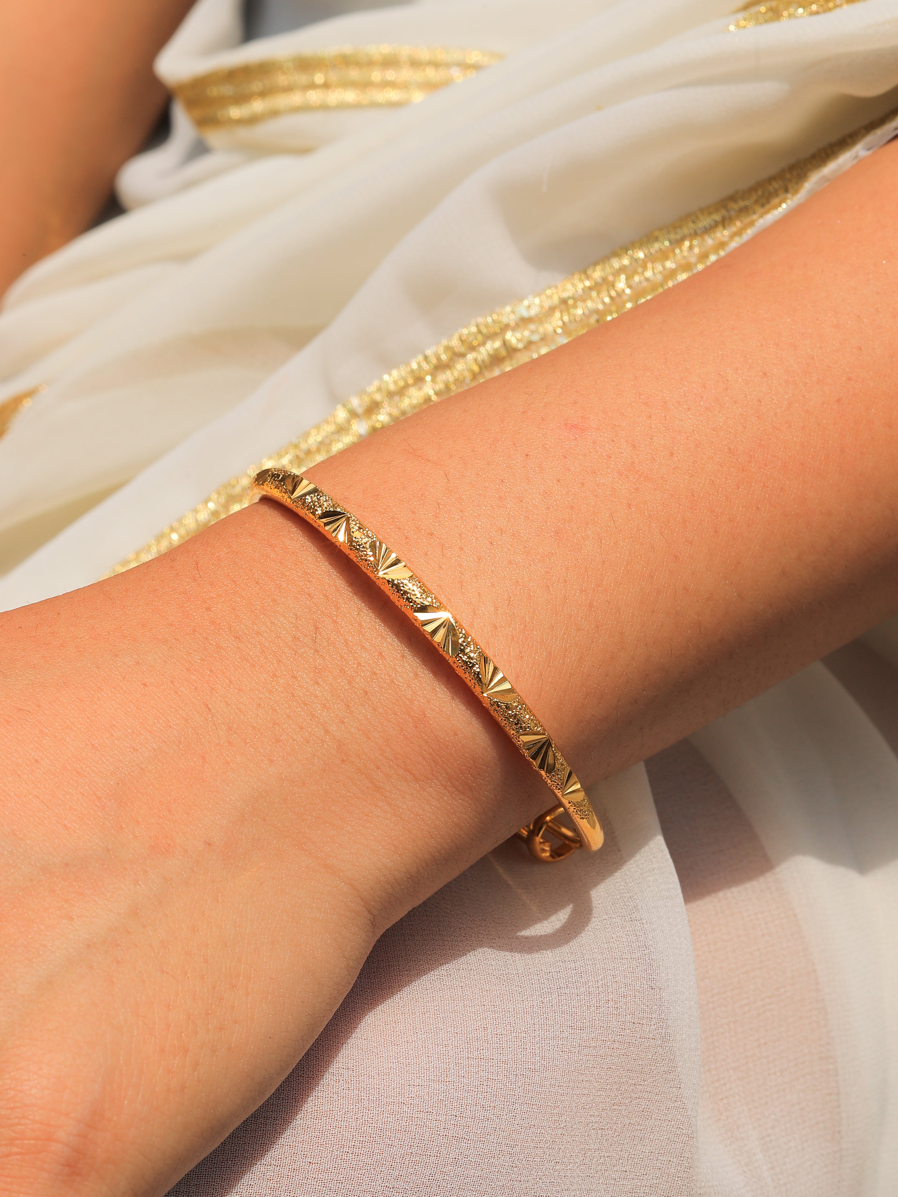 Roshni brass polished bracelet is backordered and will ship as soon as it is back in stock.