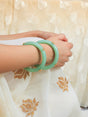 Roshni Acrylic with Brass Plated flower Bangles - Pista 2/4(Set Of 2 pcs) is backordered and will ship as soon as it is back in stock.