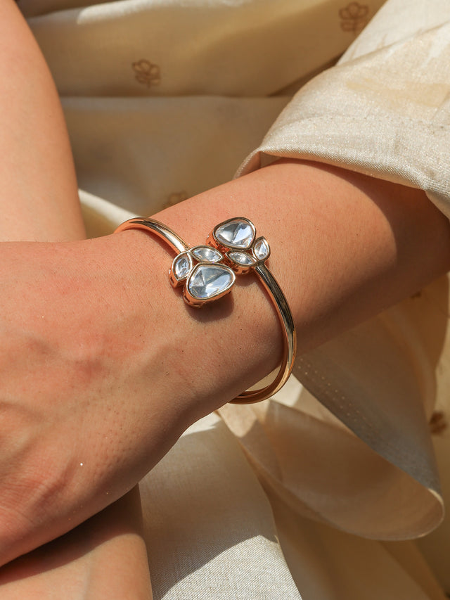 Adorn your wrist with timeless luxury through this exquisite Tyaani Kundan bracelet, featuring dazzling uncut Kundan stones and a striking ruby centerpiece. Crafted with meticulous attention to detail, this bracelet embodies the rich heritage of Tyaani craftsmanship combined with the vibrant allure of ruby.