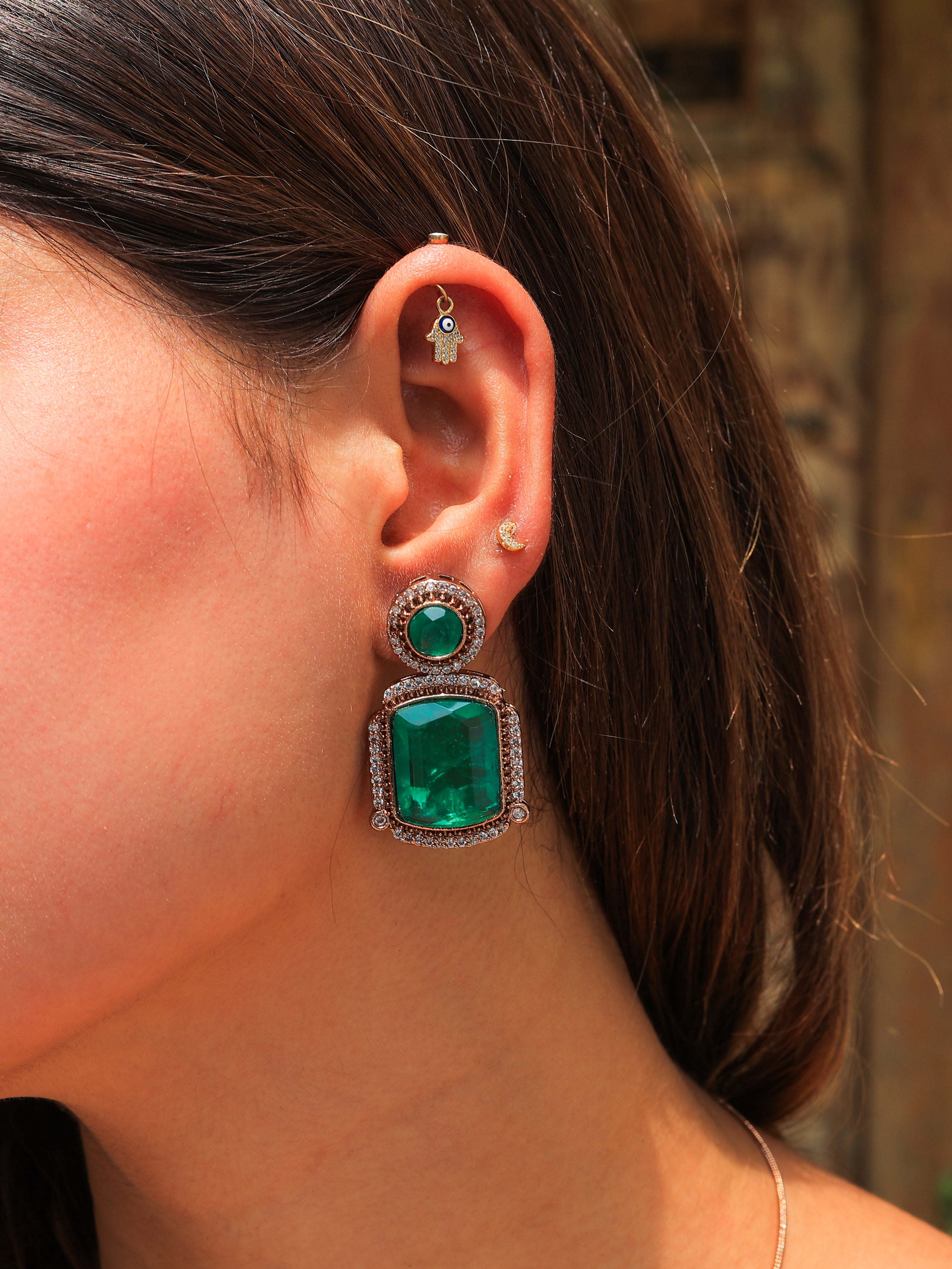 Add a hint of refined charm to your collection with this exquisite emerald green necklace, featuring three striking emerald-hued stones as its centerpiece. The vivid green stones are beautifully set to draw the eye and radiate timeless sophistication. Perfect for adding a pop of color to any outfit, this necklace blends minimal elegance with a hint of regal allure — ideal for both special occasions and everyday grace. A subtle statement piece that speaks volumes.